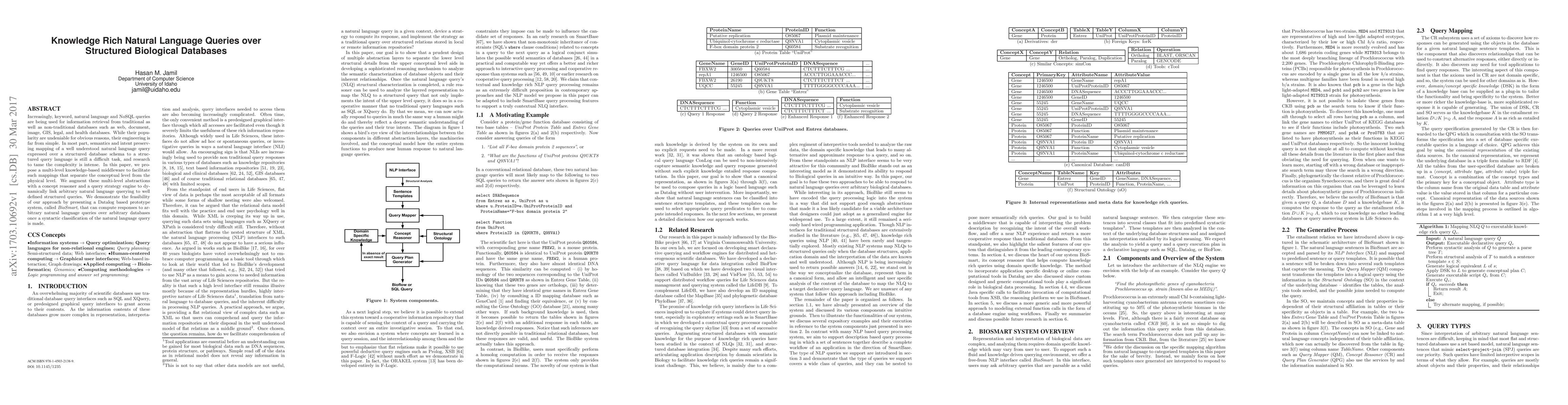 This paper proposes a multi-level knowledge-based middleware to map natural language queries to structured database queries, separating conceptual and physical levels. The approach includes a concept reasoner and a query strategy engine, demonstrated through a Datalog-based prototype, BioSmart, for retrieving information from biological databases.