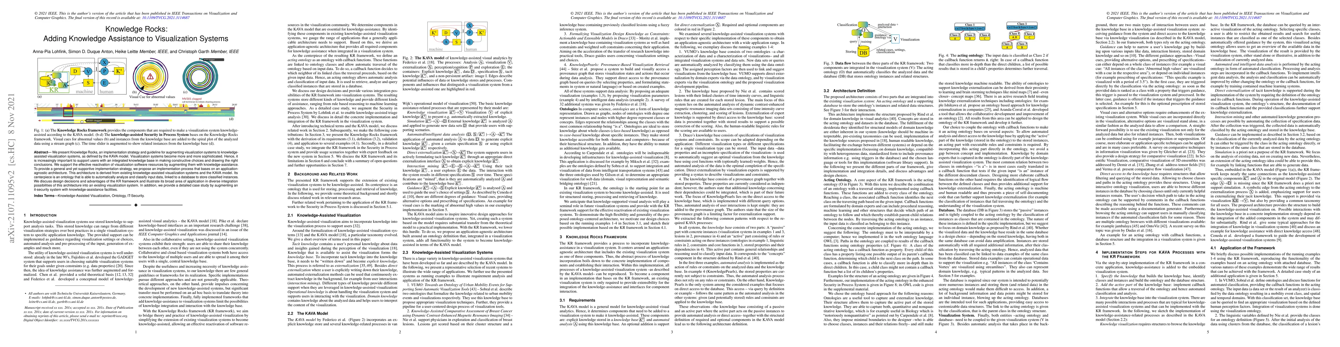 We present Knowledge Rocks, an implementation strategy and guideline for augmenting visualization systems to knowledge-assisted visualization systems, as defined by the KAVA model. Visualization systems become more and more sophisticated. Hence, it is increasingly important to support users with an integrated knowledge base in making constructive choices and drawing the right conclusions. We support the effective reactivation of visualization software resources by augmenting them with knowledge-assistance. To provide a general and yet supportive implementation strategy, we propose an implementation process that bases on an application-agnostic architecture. This architecture is derived from existing knowledge-assisted visualization systems and the KAVA model. Its centerpiece is an ontology that is able to automatically analyze and classify input data, linked to a database to store classified instances. We discuss design decisions and advantages of the KR framework and illustrate its broad area of application in diverse integration possibilities of this architecture into an existing visualization system. In addition, we provide a detailed case study by augmenting an it-security system with knowledge-assistance facilities.