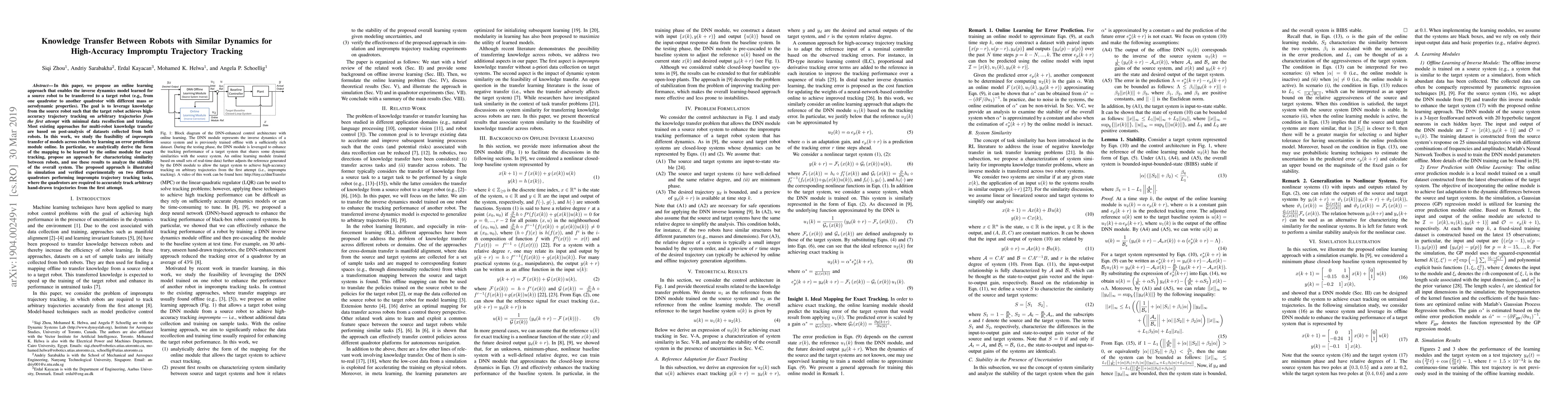 This paper proposes an online learning method to transfer the inverse dynamics model from a source robot to a target robot, enabling high-accuracy impromptu trajectory tracking with minimal data recollection. The approach involves learning an error prediction module and characterizing the similarity between robots to achieve stable and accurate tracking.