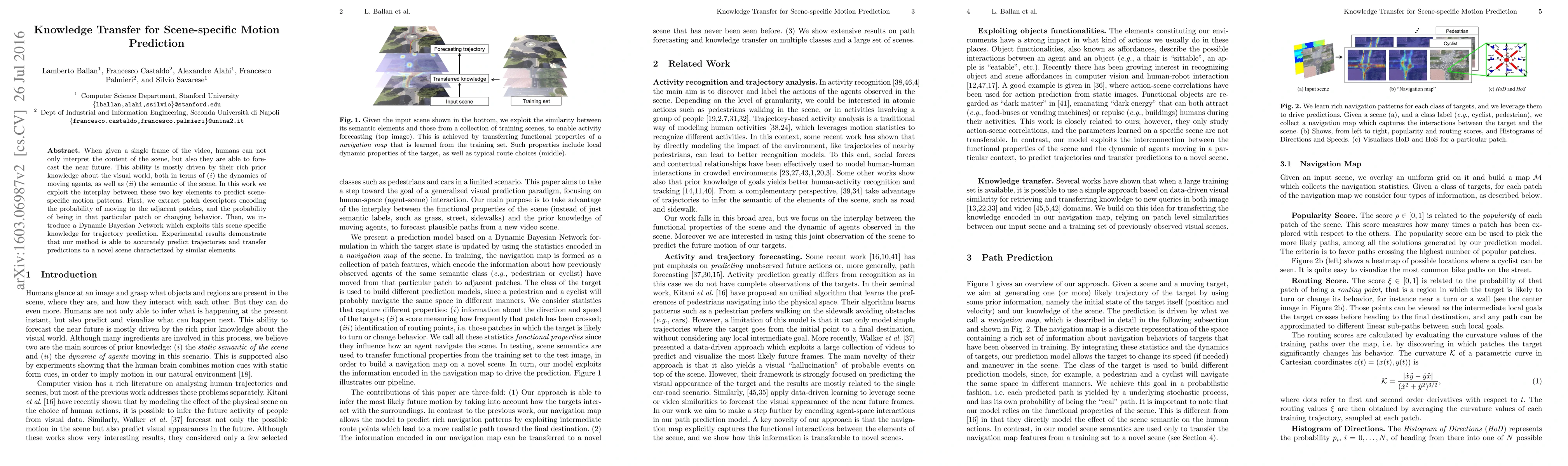 This research introduces a method using patch descriptors and Dynamic Bayesian Networks to predict scene-specific motion patterns based on visual scene understanding, demonstrating accurate trajectory prediction and transfer to new similar scenes.