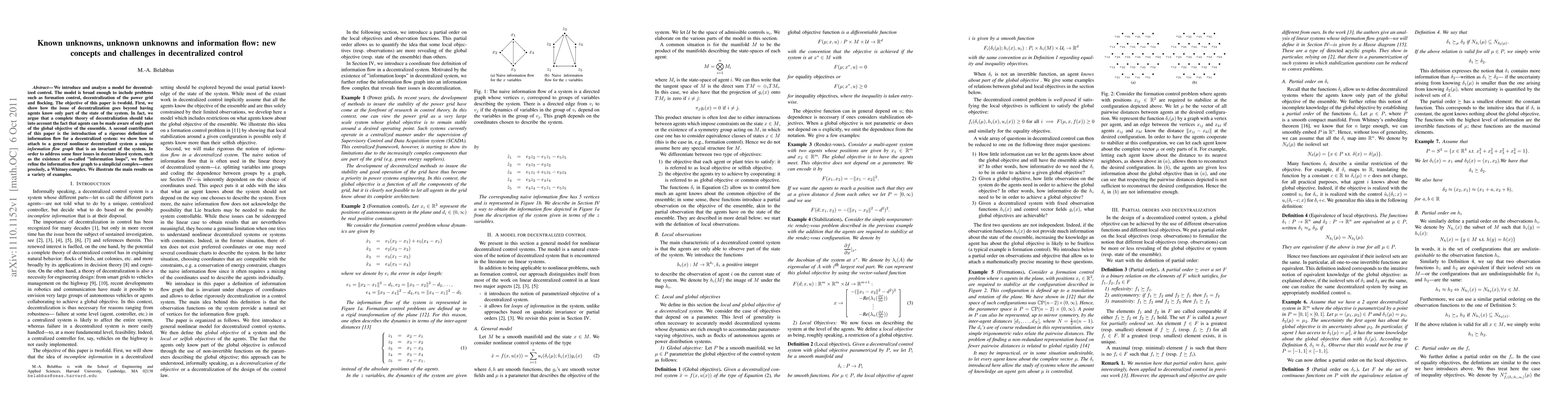 This paper develops a comprehensive model for decentralized control, emphasizing that decentralization involves agents knowing only part of both the system state and the global objective. It introduces a rigorous definition of information flow, represented by a unique invariant information flow graph, and refines it into a Whitney complex to address issues like information loops, illustrated through various examples.