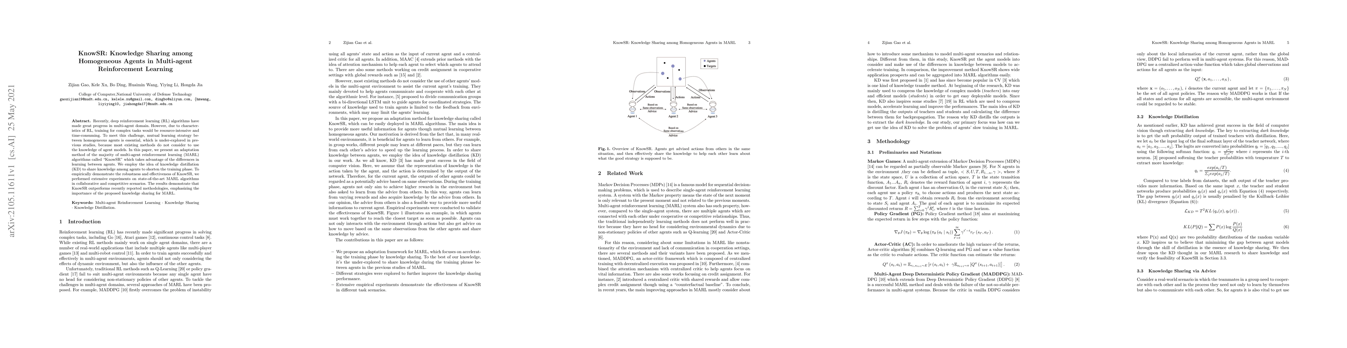 KnowSR introduces a knowledge distillation method to facilitate knowledge sharing among homogeneous agents in multi-agent reinforcement learning, significantly reducing training time and resource usage. Experimental results show KnowSR outperforms existing MARL methods in both collaborative and competitive scenarios.
