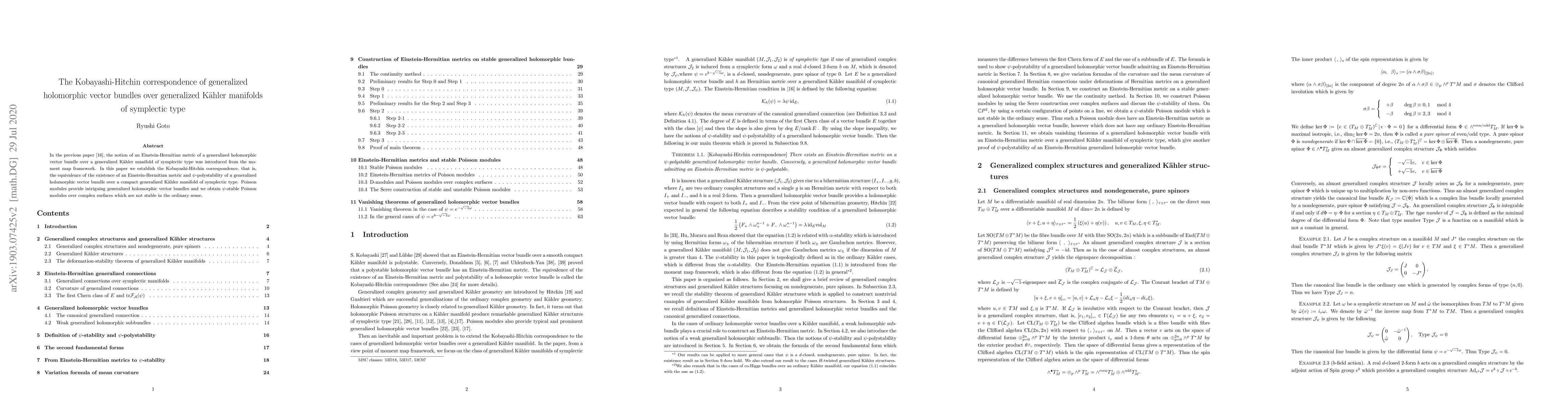 In the previous paper \cite{Goto_2017}, the notion of an Einstein-Hermitian metric of a generalized holomorphic vector bundle over a generalized Kahler manifold of symplectic type was introduced from the moment map framework. In this paper we establish a Kobayashi-Hitchin correspondence, that is, the equivalence of the existence of an Einstein-Hermitian metric and $\psi$-polystability of a generalized holomorphic vector bundle over a compact generalized Kahler manifold of symplectic type. Poisson modules provide intriguing generalized holomorphic vector bundles and we obtain $\psi$-stable Poisson modules over complex surfaces which are not stable in the ordinary sense.