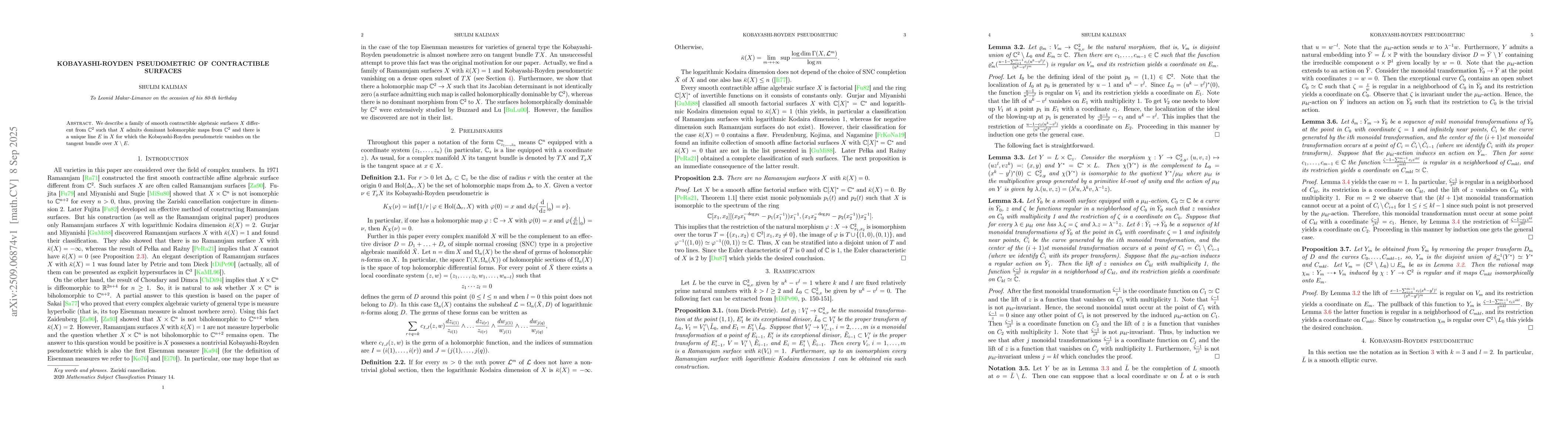 We describe a family of smooth contractible algebraic surfaces $X$ different from $\C^2$ such that $X$ admits dominant holomorphic maps from $\C^2$ and there is a unique line $E$ in $X$ for which the Kobayashi-Royden pseudometric vanishes on the tangent bundle over $X\setminus E$.