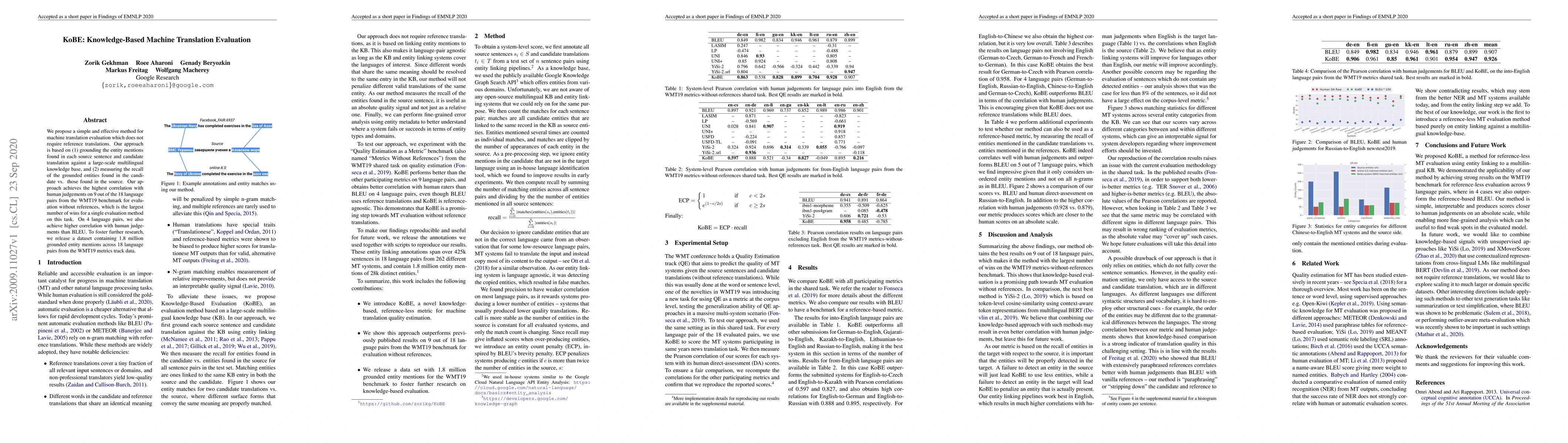 KoBE is a novel machine translation evaluation method that leverages multilingual knowledge bases to ground entity mentions in translations, achieving high correlation with human judgments on most language pairs in the WMT19 benchmark. It outperforms BLEU on 4 language pairs and releases a dataset for further research.