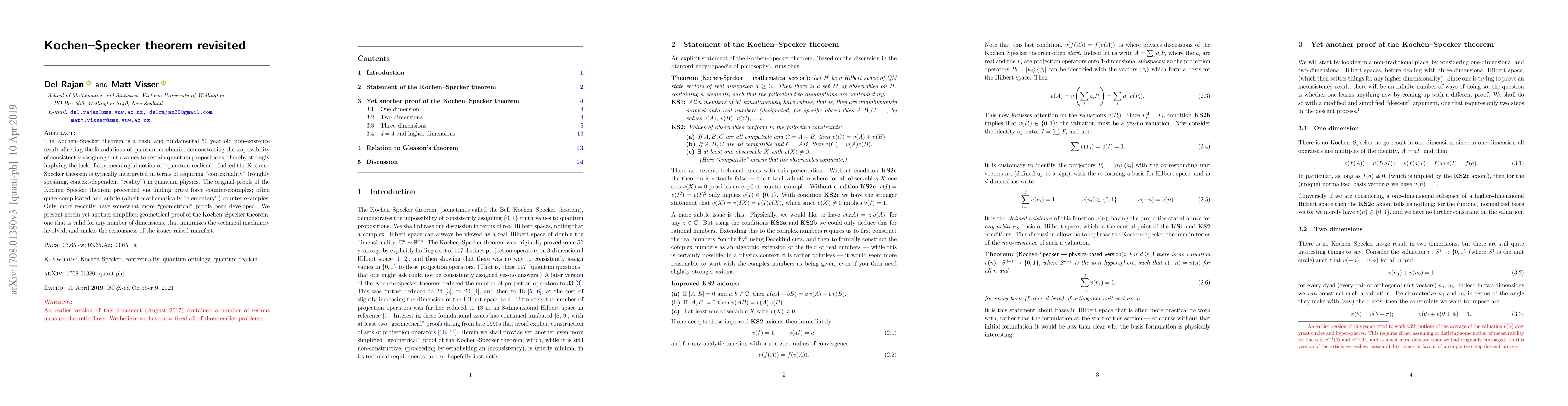 This paper presents a simplified geometrical proof of the Kochen-Specker theorem, which highlights the impossibility of a "quantum realism" and the necessity of "contextuality" in quantum mechanics, minimizing technical complexity while remaining valid across any dimensional space.
