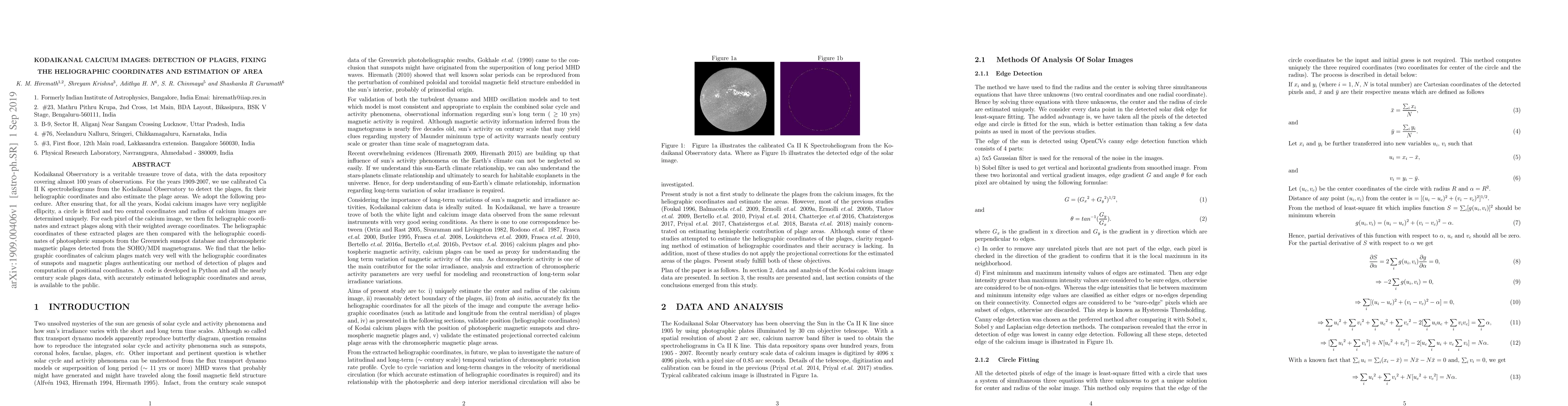 This paper details the detection and analysis of plages using 100 years of Ca II K spectroheliograms from the Kodaikanal Observatory. The study accurately determines the heliographic coordinates and areas of plages, validating the method through comparison with sunspot and magnetic plages data.