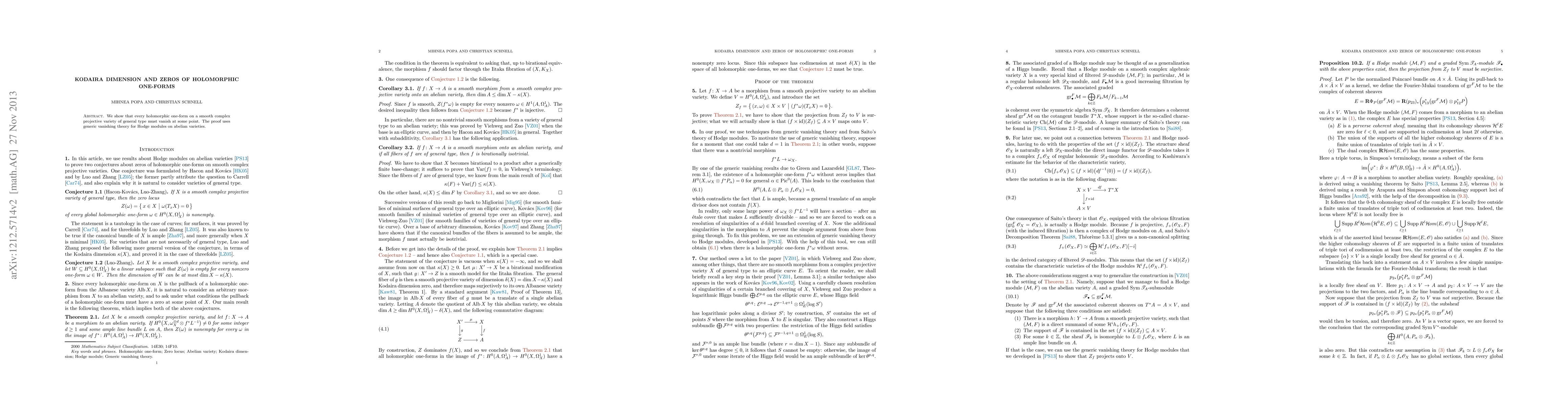 Summary: This paper proves that holomorphic one-forms on smooth complex projective varieties of general type must have zeros, leveraging generic vanishing theory for Hodge D-modules on abelian varieties. The result underscores the intrinsic connection between the geometry of the variety and the properties of its holomorphic one-forms.