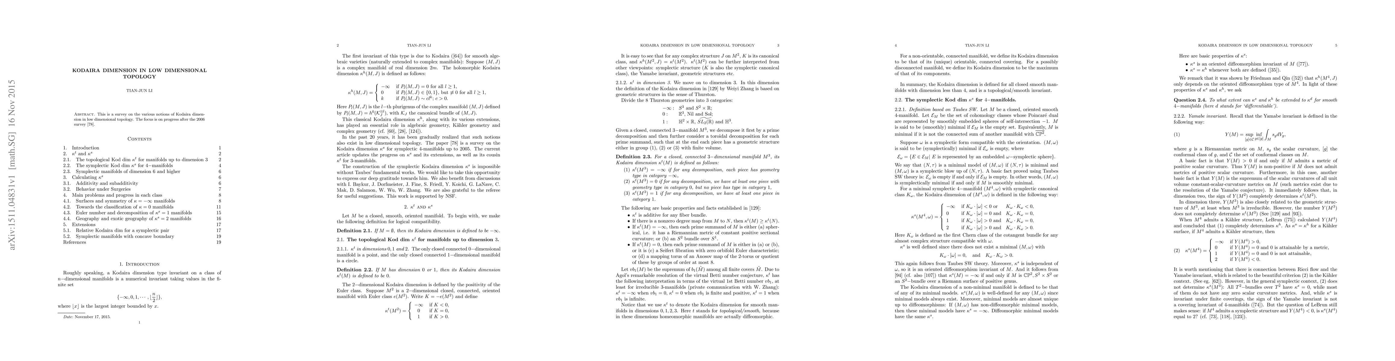 Summary: This survey explores advancements in understanding Kodaira dimension within the context of low-dimensional topology, highlighting developments since the 2006 review, and discusses the implications for geometric and topological structures.