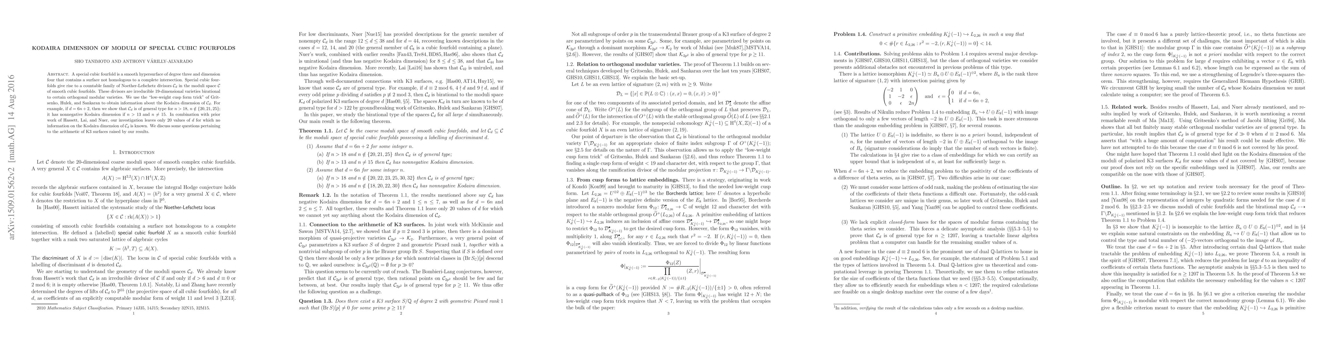 This paper investigates the Kodaira dimension of moduli spaces for special cubic fourfolds, employing the "low-weight cusp form trick" to demonstrate that certain moduli spaces are of general type under specific conditions. It leaves only 20 undetermined values for further investigation and raises questions about the arithmetic of K3 surfaces.