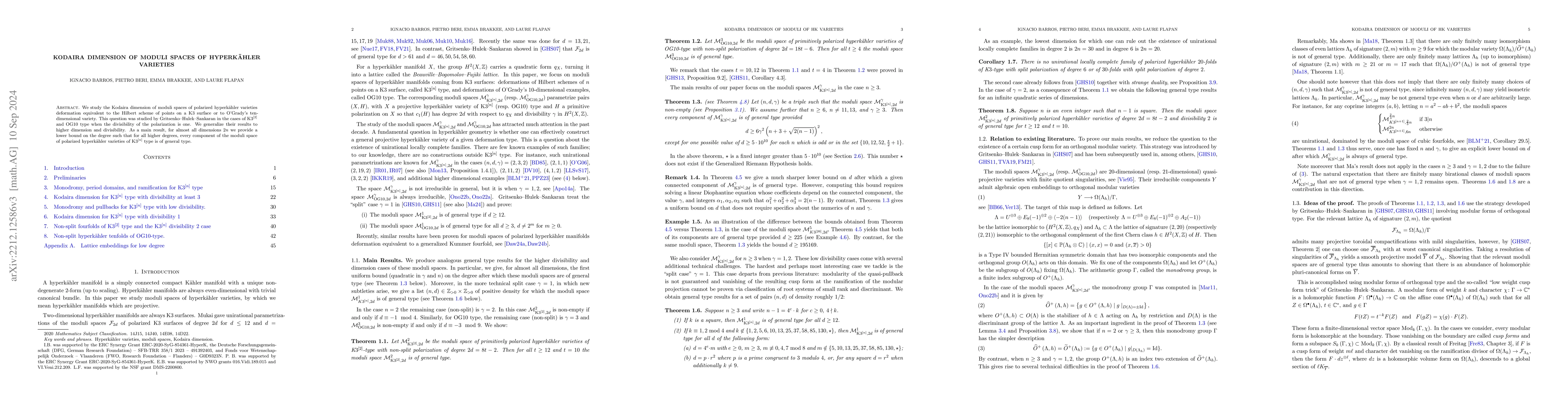 This paper investigates the Kodaira dimension of moduli spaces of polarized hyperkähler varieties, specifically focusing on those deformation equivalent to the Hilbert scheme of points on a K3 surface or O'Grady's ten-dimensional variety. It generalizes previous results by Gritsenko-Hulek-Sankaran for higher dimensions and divisibility, providing a lower bound on the degree where every component of the moduli space of $K3^{[n]}$ type is of general type.