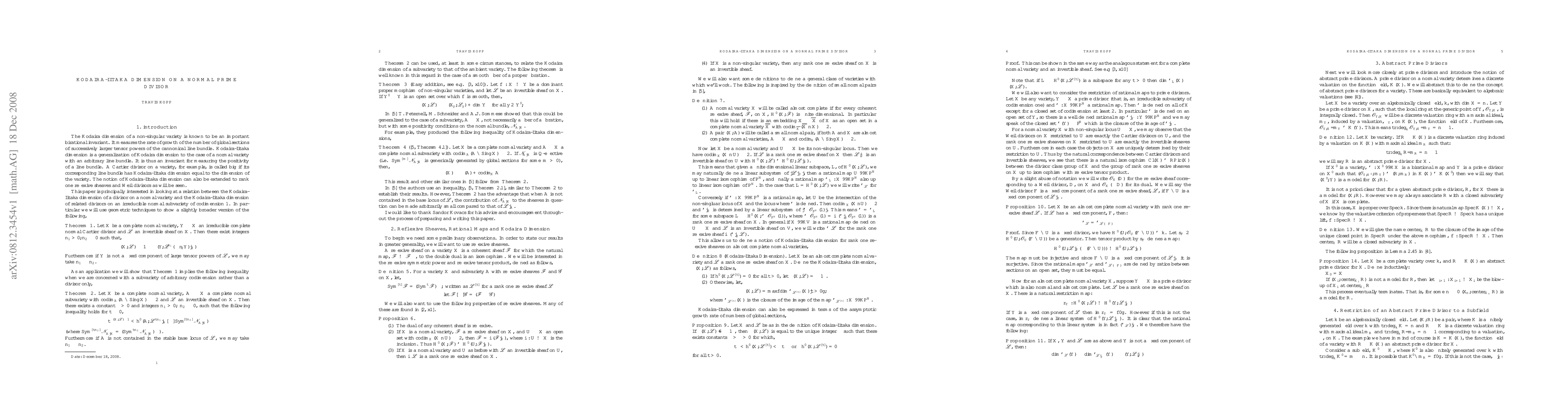 This paper establishes a relationship between the Kodaira-Iitaka dimension of a divisor on a normal variety and that of related divisors on an irreducible normal subvariety of codimension one, with implications for subvarieties of any codimension. The main result shows that under certain conditions, the Kodaira-Iitaka dimension of the divisor on the subvariety can be bounded by that of the divisor on the original variety.