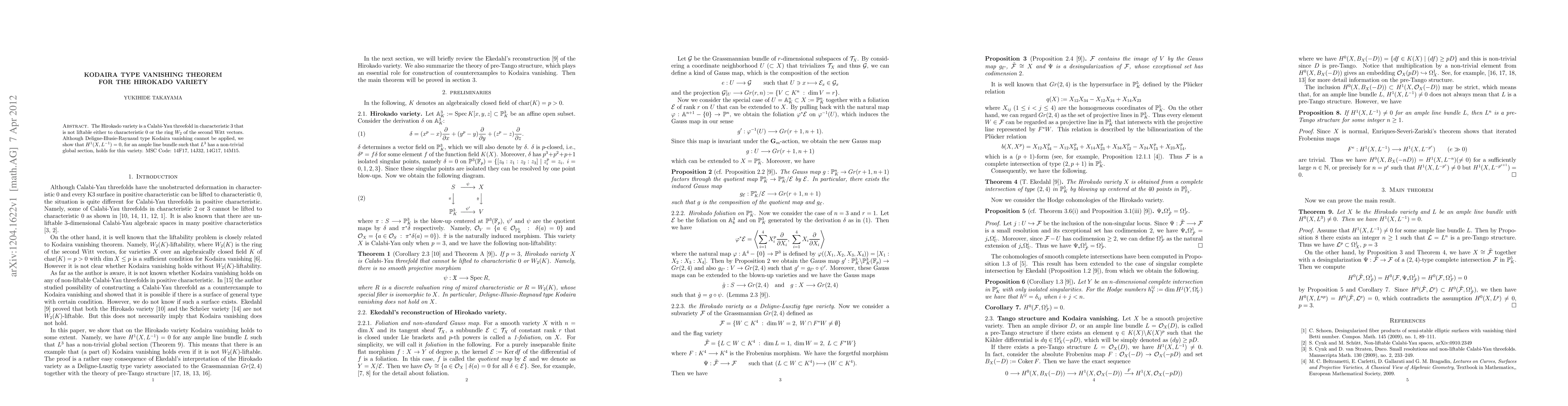 The Hirokado variety is a Calabi-Yau threefold in characteristic 3 that is not liftable either to characteristic~0 or the ring $W_2$ of the second Witt vectors. Although Deligne-Illusie-Raynaud type Kodaira vanishing cannot be applied, we show that $H^1(X, L^{-1})=0$, for an ample line bundle such that $L^3$ has a non-trivial global section, holds for this variety.