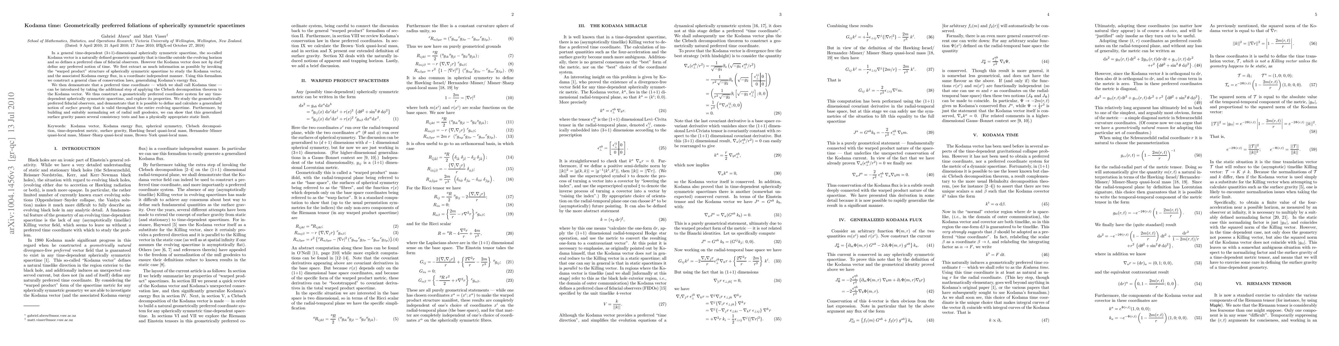 This paper explores the Kodama vector in spherically symmetric spacetimes to define a preferred class of fiducial observers and introduces Kodama time as a geometrically preferred coordinate system. It constructs generalized conservation laws and demonstrates the consistency of a generalized notion of surface gravity throughout the spacetime.
