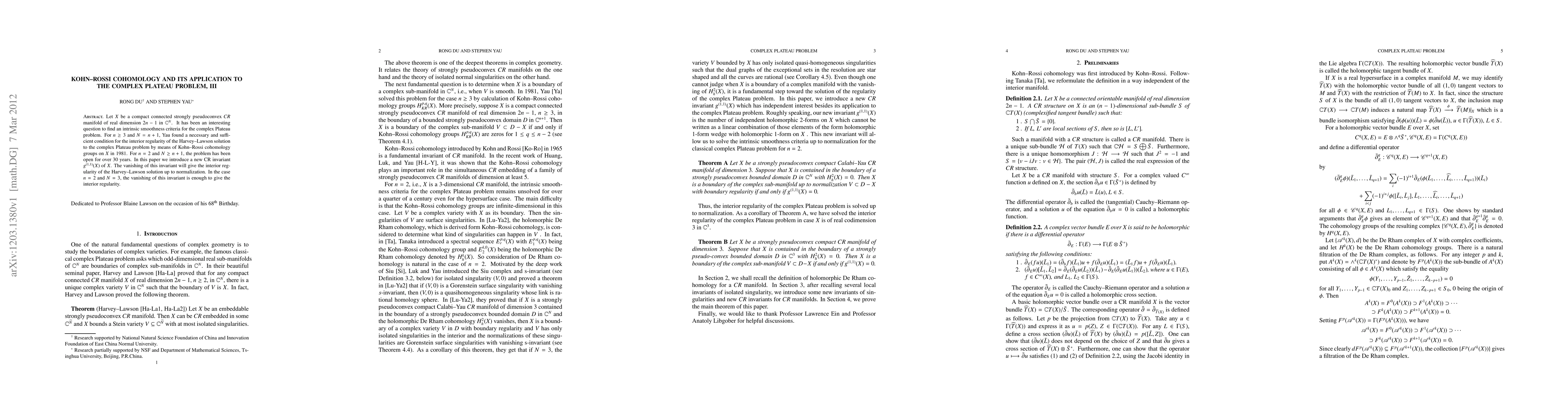 Let $X$ be a compact connected strongly pseudoconvex $CR$ manifold of real dimension 2n-1 in $\mathbb{C}^{N}$. It has been an interesting question to find an intrinsic smoothness criteria for the complex Plateau problem. For $n\ge 3$ and $N=n+1$, Yau found a necessary and sufficient condition for the interior regularity of the Harvey-Lawson solution to the complex Plateau problem by means of Kohn-Rossi cohomology groups on $X$ in 1981. For n=2 and $N\ge n+1$, the problem has been open for over 30 years. In this paper we introduce a new CR invariant $g^{(1,1)}(X)$ of $X$. The vanishing of this invariant will give the interior regularity of the Harvey-Lawson solution up to normalization. In case $n=2$ and N=3, the vanishing of this invariant is enough to give the interior regularity.