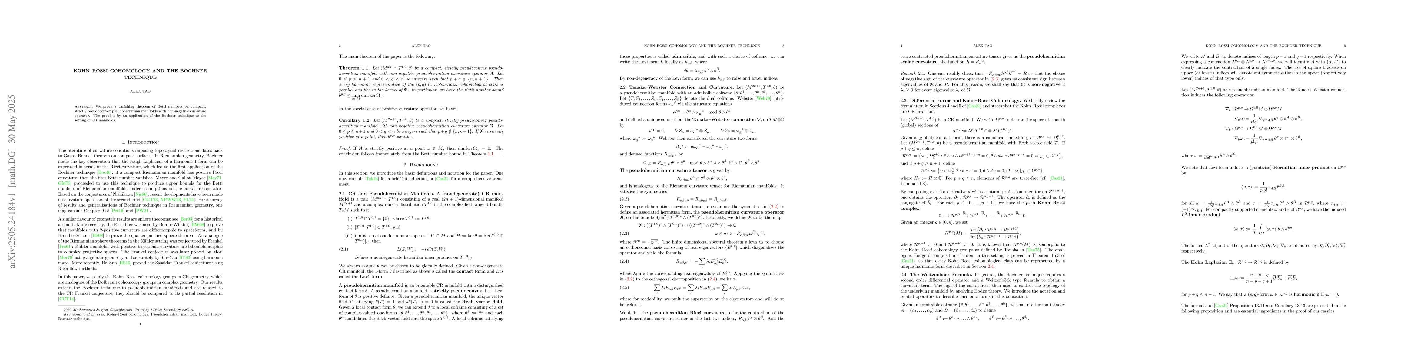 This research novelly combines the Bochner technique from differential geometry with CR manifold theory to derive new results on curvature operators and Betti numbers