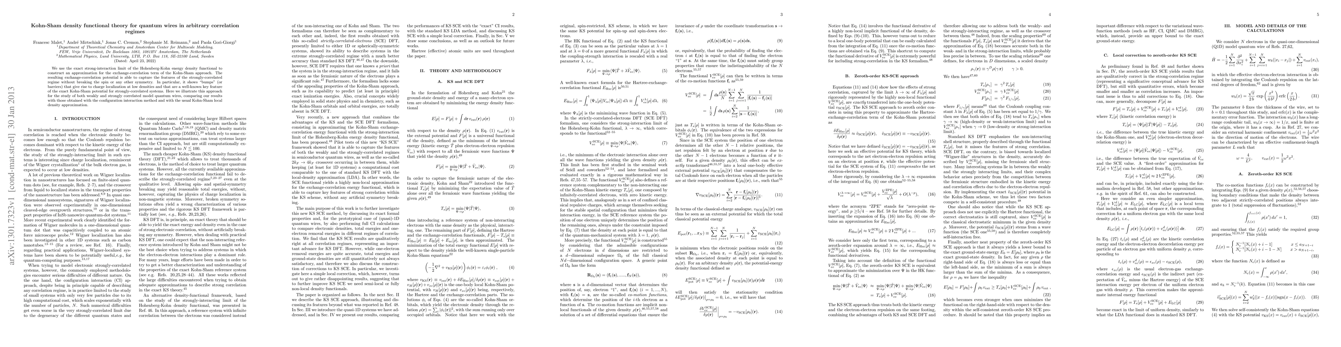 This research develops a Kohn-Sham density functional theory approximation for quantum wires, capturing strongly correlated regimes without symmetry breaking. It effectively models charge localization and is compared against configuration interaction and local density approximation methods.