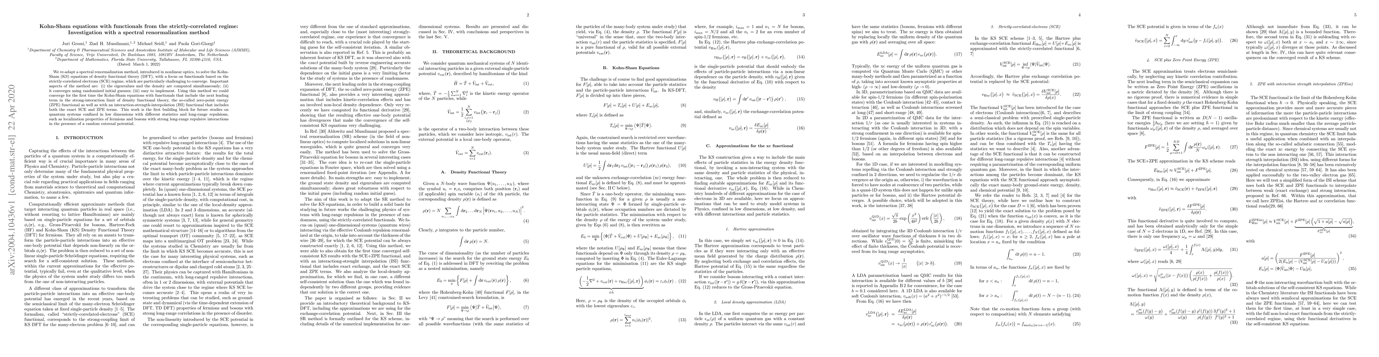 We re-adapt a spectral renormalization method, introduced in nonlinear optics, to solve the Kohn-Sham (KS) equations of density functional theory (DFT), with a focus on functionals based on the strictly-correlated electrons (SCE) regime, which are particularly challenging to converge. Important aspects of the method are: (i) the eigenvalues and the density are computed simultaneously; (ii) it converges using randomized initial guesses; (iii) easy to implement. Using this method we could converge for the first time the Kohn-Sham equations with functionals that include the next leading term in the strong-interaction limit of density functional theory, the so-called zero-point energy (ZPE) functional as well as with an interaction-strength-interpolation (ISI) functional that includes both the exact SCE and ZPE terms. This work is the first building block for future studies on quantum systems confined in low dimensions with different statistics and long-range repulsions, such as localization properties of fermions and bosons with strong long-range repulsive interactions in the presence of a random external potential.