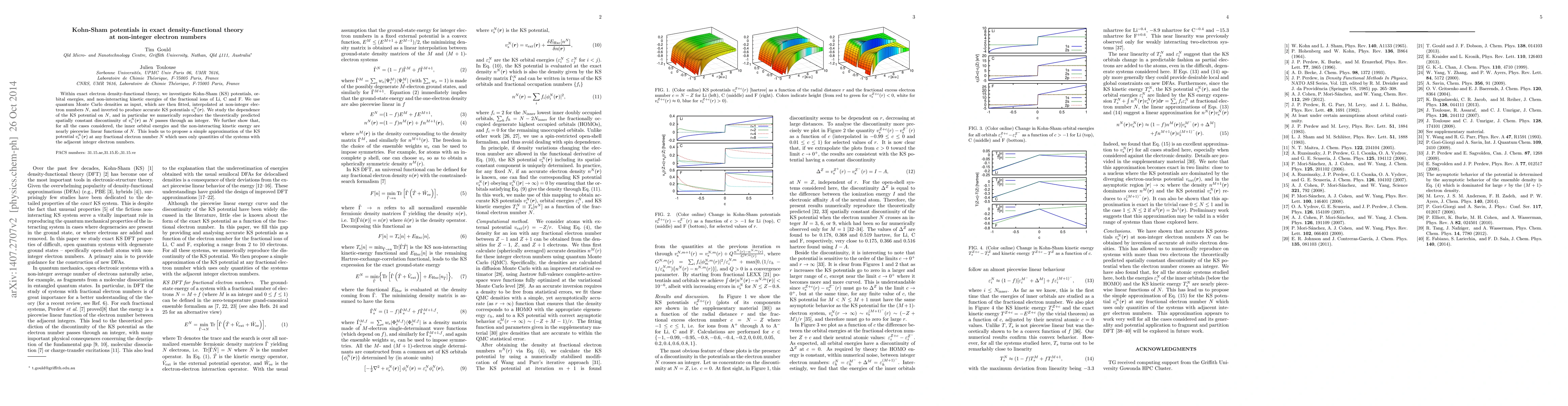 This research investigates Kohn-Sham potentials at non-integer electron numbers in exact density-functional theory, finding nearly piecewise linear functions for orbital energies and kinetic energy.