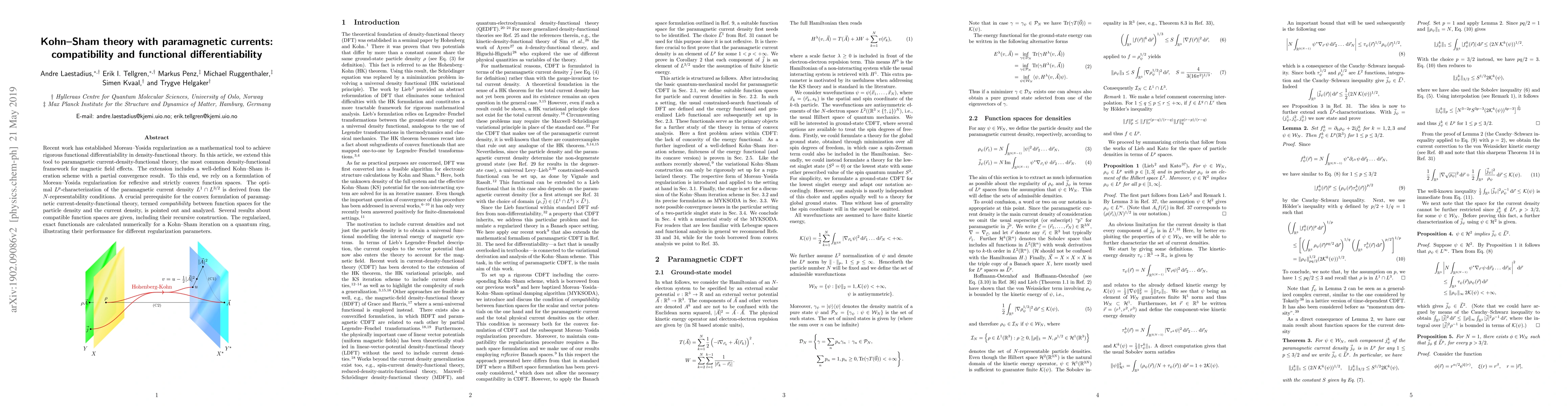 This paper extends Moreau-Yosida regularization to paramagnetic current-density-functional theory, ensuring rigorous functional differentiability and presenting a well-defined Kohn-Sham iteration scheme. It also discusses the compatibility between function spaces for particle and current densities and provides numerical results for a quantum ring.