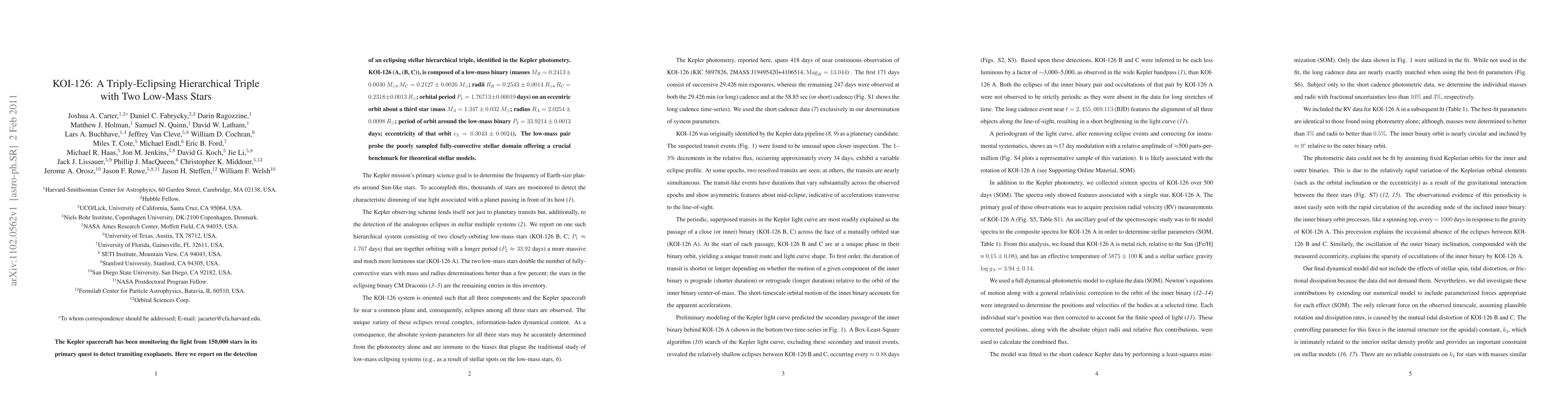 The research utilized Kepler spacecraft photometry and sixteen radial velocity measurements to analyze the eclipsing stellar hierarchical triple KOI-126 (A,(B, C)) composed of a low-mass binary and a third star.