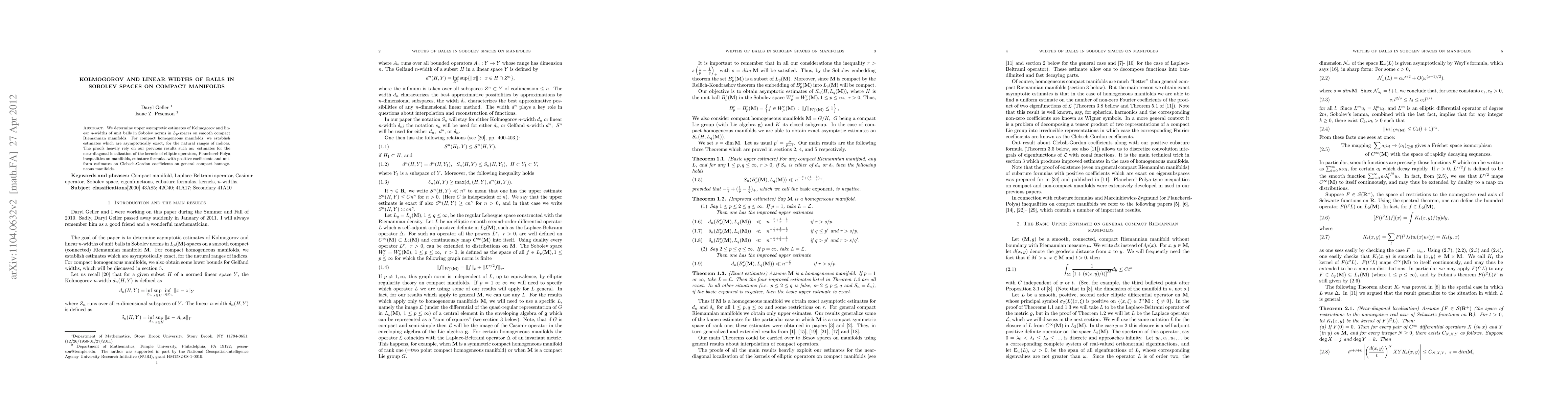 This paper provides upper asymptotic estimates for Kolmogorov and linear n-widths of unit balls in Sobolev and Besov norms on L_p-spaces over smooth compact Riemannian manifolds. For compact homogeneous manifolds, it establishes asymptotically exact estimates, leveraging previous results on elliptic operators, Plancherel-Polya inequalities, and Clebsch-Gordon coefficients.