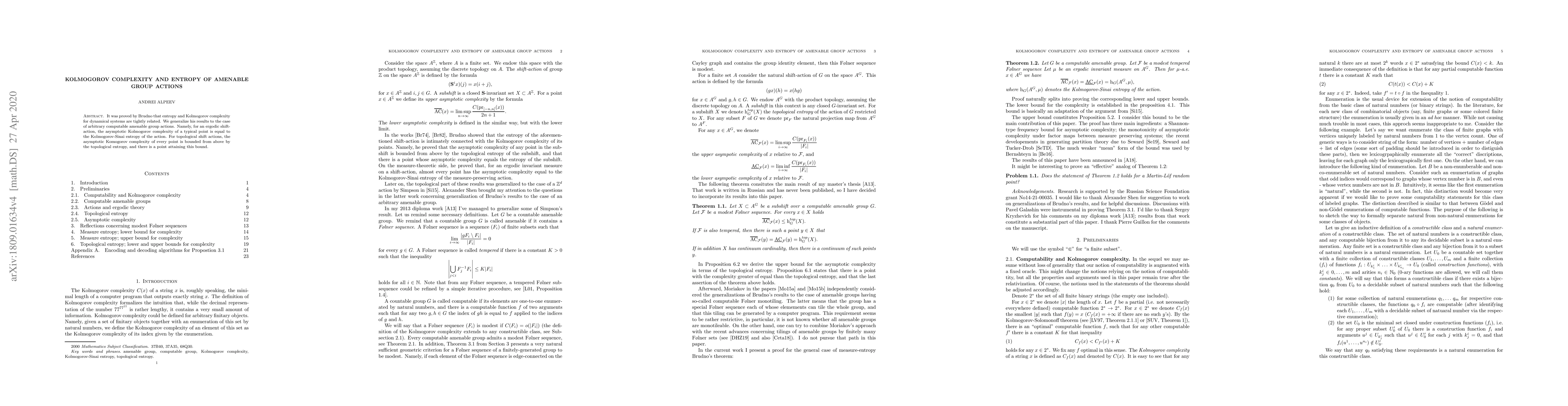 This paper generalizes the relationship between entropy and Kolmogorov complexity to computable amenable group actions, showing that for ergodic shift-actions, the asymptotic Kolmogorov complexity of a typical point equals the Kolmogorov-Sinai entropy. For topological shift actions, the asymptotic Kolmogorov complexity is bounded by the topological entropy, with a specific point achieving this upper bound.