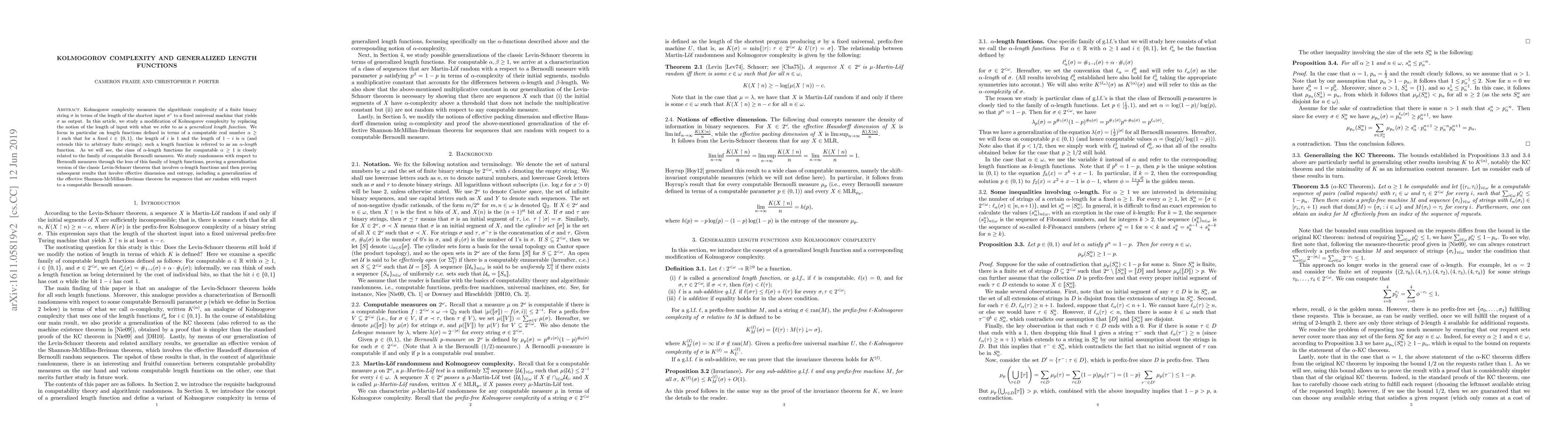 Kolmogorov complexity measures the algorithmic complexity of a finite binary string $\sigma$ in terms of the length of the shortest description $\sigma^*$ of $\sigma$. Traditionally, the length of a string is taken to measure the amount of information contained in the string. However, we may also view the length of $\sigma$ as a measure of the cost of producing $\sigma$, which permits one to generalize the notion of length, wherein the cost of producing a 0 or a 1 can vary in some prescribed manner. In this article, we initiate the study of this generalization of length based on the above information cost interpretation. We also modify the definition of Kolmogorov complexity to use such generalized length functions instead of standard length. We further investigate conditions under which the notion of complexity defined in terms of a given generalized length function preserves some essential properties of Kolmogorov complexity. We focus on a specific class of generalized length functions that are intimately related to a specific subcollection of Bernoulli $p$-measures, namely those corresponding to the unique computable real $p\in(0,1)$ such that $p^k=1-p$, for integers $k\geq 1$. We then study randomness with respect to such measures, by proving a generalization version of the classic Levin-Schnorr theorem that involves $k$-length functions and then proving subsequent results that involve effective dimension and entropy.