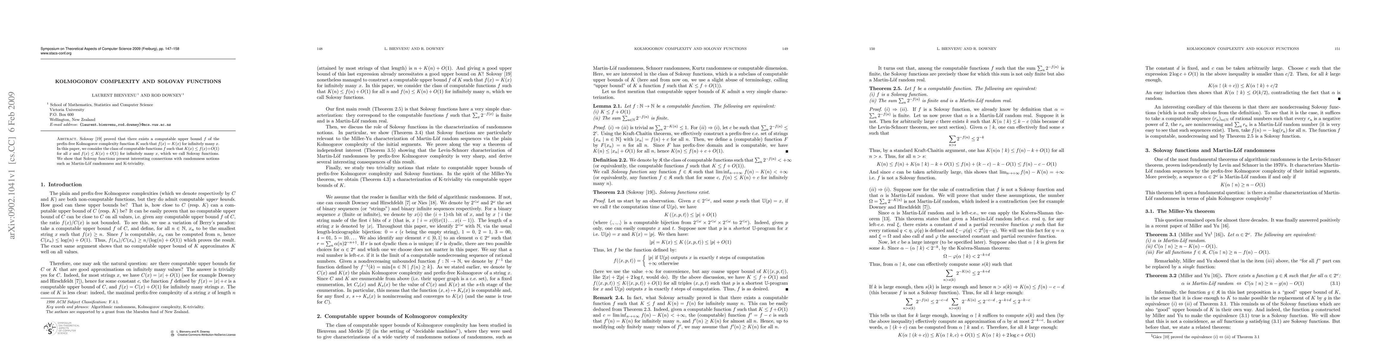 This paper explores Solovay functions, computable upper bounds of prefix-free Kolmogorov complexity that satisfy specific properties, connecting them to concepts like Martin-L"of randomness and K-triviality.