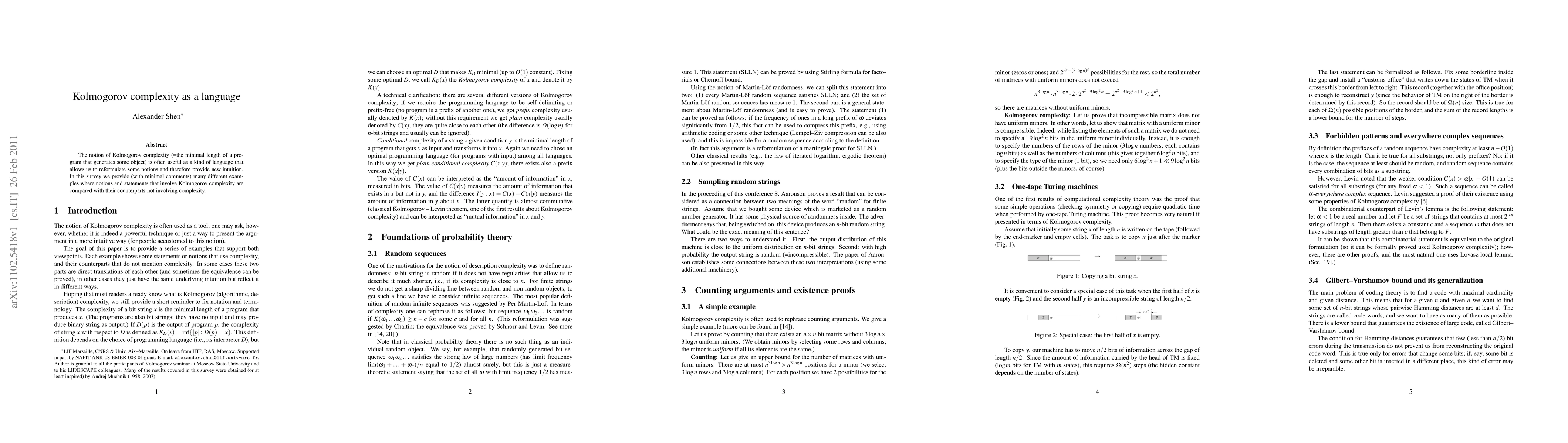 This paper explores Kolmogorov complexity as a conceptual framework, demonstrating how it serves as a language that reformulates various notions, offering new insights and intuitions by comparing complex and non-complex counterparts.