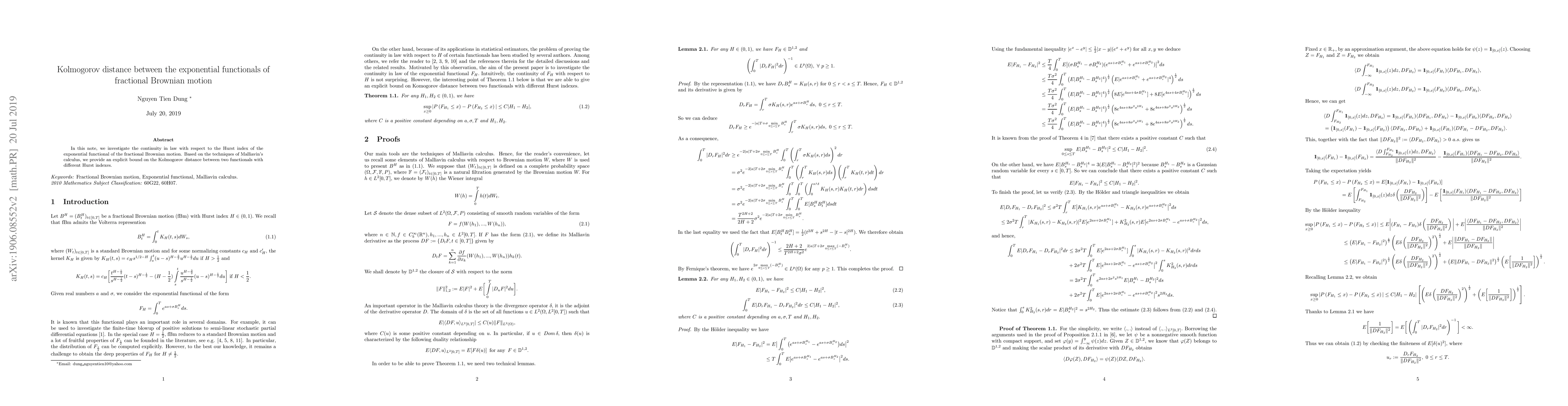 Summary: This paper examines the continuity in law of the exponential functional of fractional Brownian motion concerning the Hurst index, offering an explicit bound on the Kolmogorov distance using Malliavin calculus techniques.