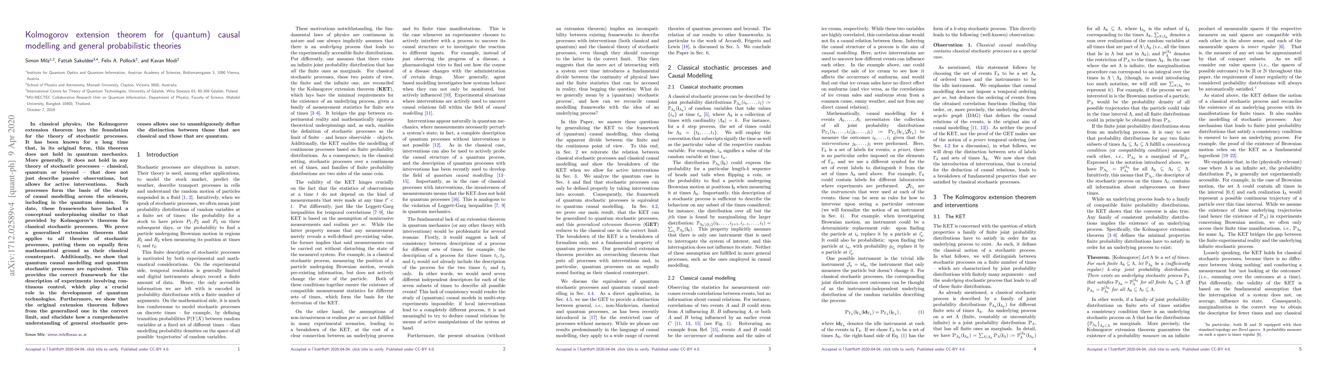 The paper proves a generalized Kolmogorov extension theorem that applies to all stochastic processes, including quantum causal modelling, providing a unified mathematical framework for both classical and quantum processes. It also demonstrates the equivalence of quantum causal modelling and quantum stochastic processes, essential for experiments involving continuous control in quantum technologies.
