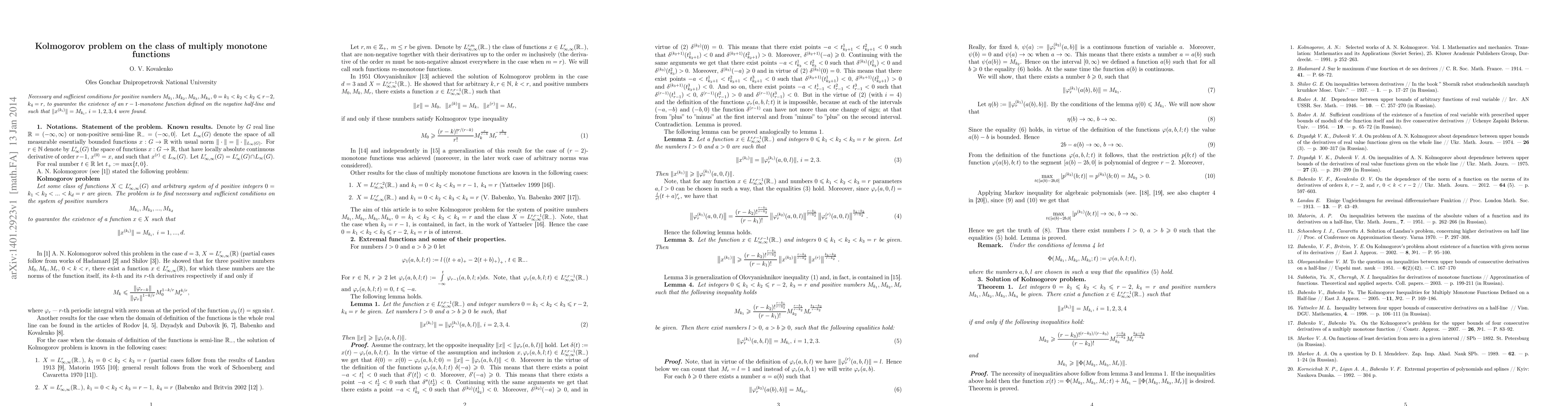 Researchers found necessary and sufficient conditions for creating an r-1-monotone function with specific properties on the negative half-line. These conditions guarantee the existence of such a function for positive numbers M_{k_1} to M_{k_4}.