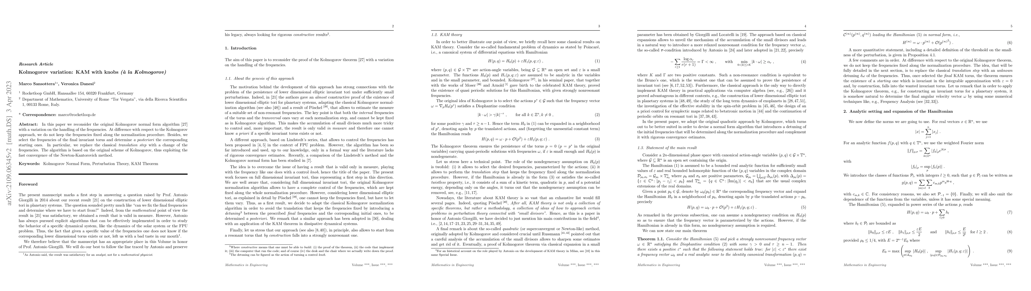 This paper proposes a modified version of the Kolmogorov normal form algorithm that allows for dynamic adjustment of frequencies during normalization, selecting final frequencies a posteriori and replacing the classical translation step with a frequency change, while maintaining the fast convergence of the Newton-Kantorovich method.