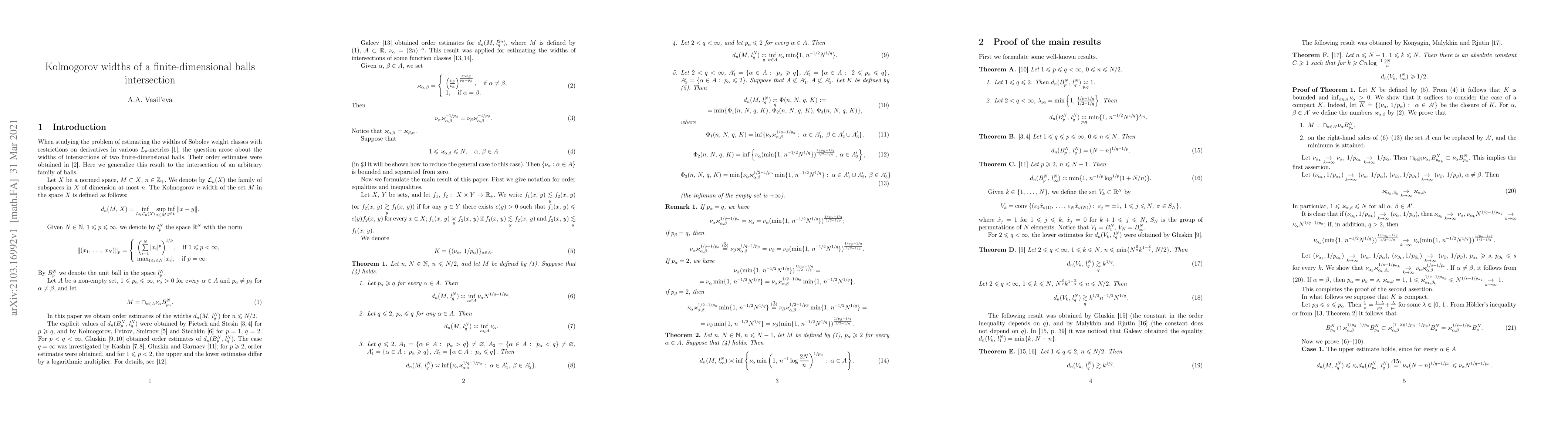 Summary: The research provides order estimates for the Kolmogorov widths associated with the intersection of finite-dimensional balls, contributing to the understanding of geometric properties in finite-dimensional spaces.