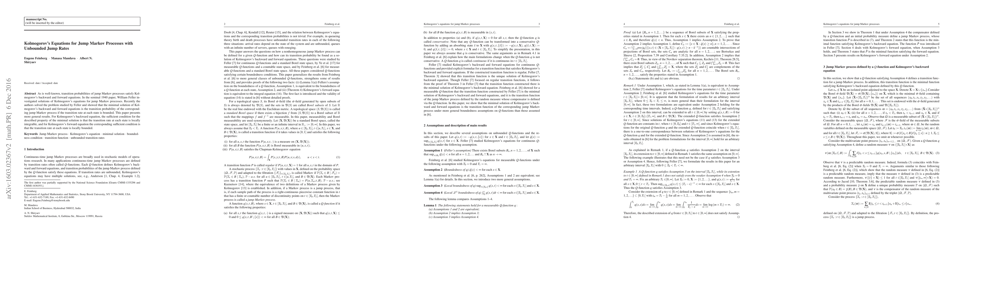As well-known, transition probabilities of jump Markov processes satisfy Kolmogorov's backward and forward equations. In the seminal 1940 paper, William Feller investigated solutions of Kolmogorov's equations for jump Markov processes. Recently the authors solved the problem studied by Feller and showed that the minimal solution of Kolmogorov's backward and forward equations is the transition probability of the corresponding jump Markov process if the transition rate at each state is bounded. This paper presents more general results. For Kolmogorov's backward equation, the sufficient condition for the described property of the minimal solution is that the transition rate at each state is locally integrable, and for Kolmogorov's forward equation the corresponding sufficient condition is that the transition rate at each state is locally bounded.