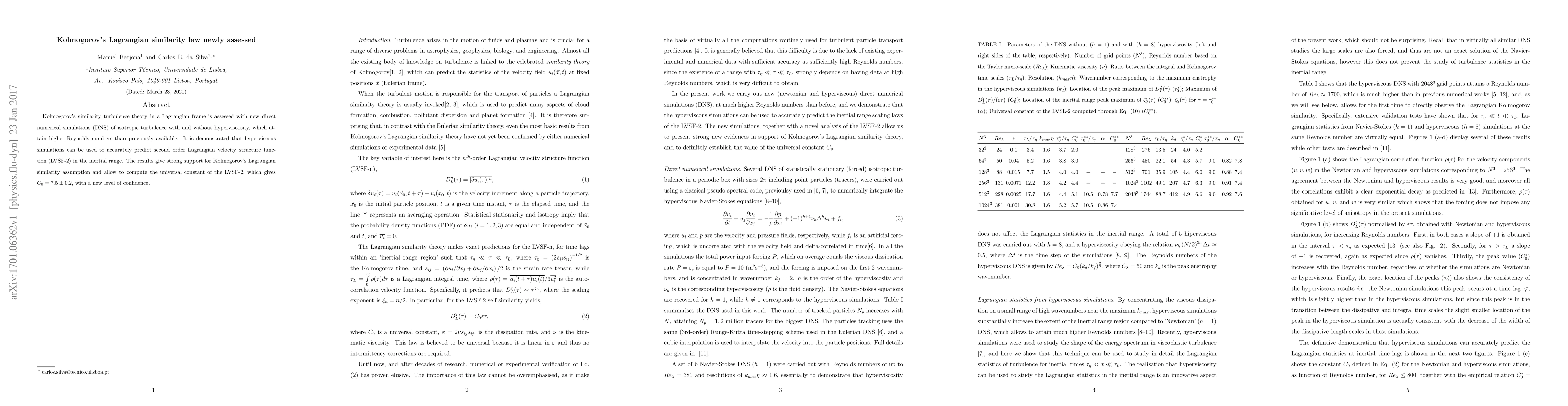 This paper assesses Kolmogorov's Lagrangian similarity theory using new high-Reynolds number direct numerical simulations of isotropic turbulence, including hyperviscous cases. The findings strongly support the theory and determine the universal constant for the second-order Lagrangian velocity structure function with a new level of confidence, yielding $C_0=7.5 \pm 0.2$.