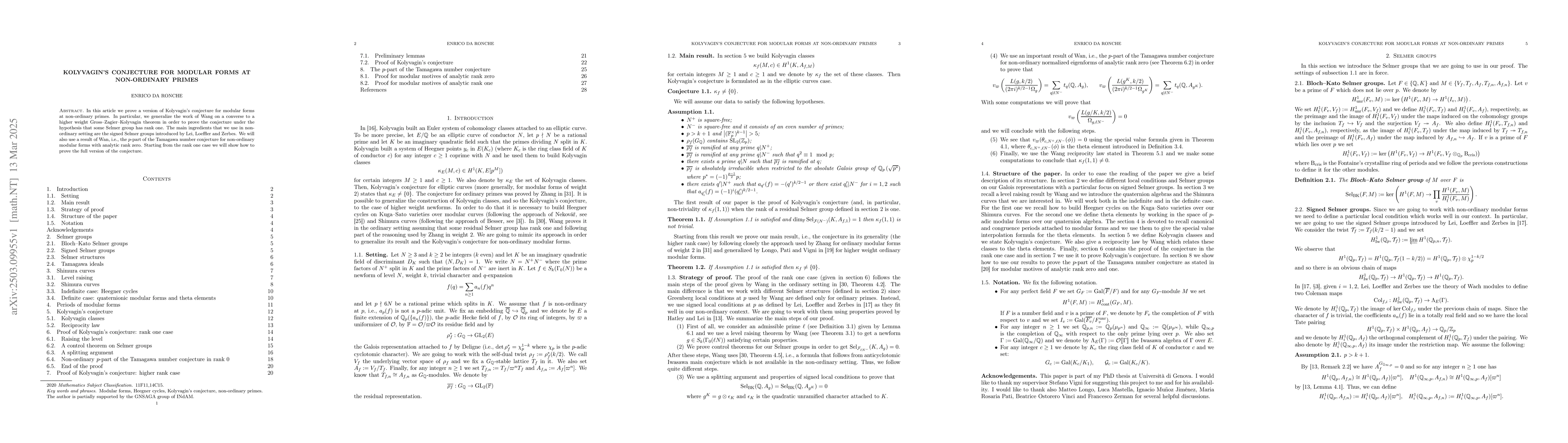 The novelty lies in the generalization of Kolyvagin's conjecture to non-ordinary primes, the use of signed Selmer groups, and the integration of Wan's result on the $p$-part of the Tamagawa number conjecture for non-ordinary modular forms.