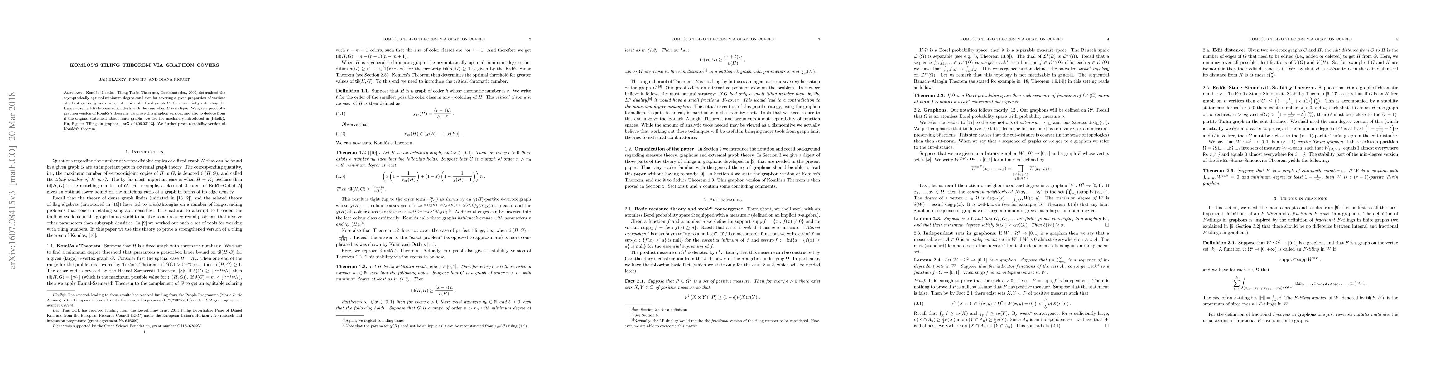 Komlos [Komlos: Tiling Turan Theorems, Combinatorica, 2000] determined the asymptotically optimal minimum-degree condition for covering a given proportion of vertices of a host graph by vertex-disjoint copies of a fixed graph H, thus essentially extending the Hajnal-Szemeredi theorem which deals with the case when H is a clique. We give a proof of a graphon version of Komlos's theorem. To prove this graphon version, and also to deduce from it the original statement about finite graphs, we use the machinery introduced in [Hladky, Hu, Piguet: Tilings in graphons, arXiv:1606.03113]. We further prove a stability version of Komlos's theorem.