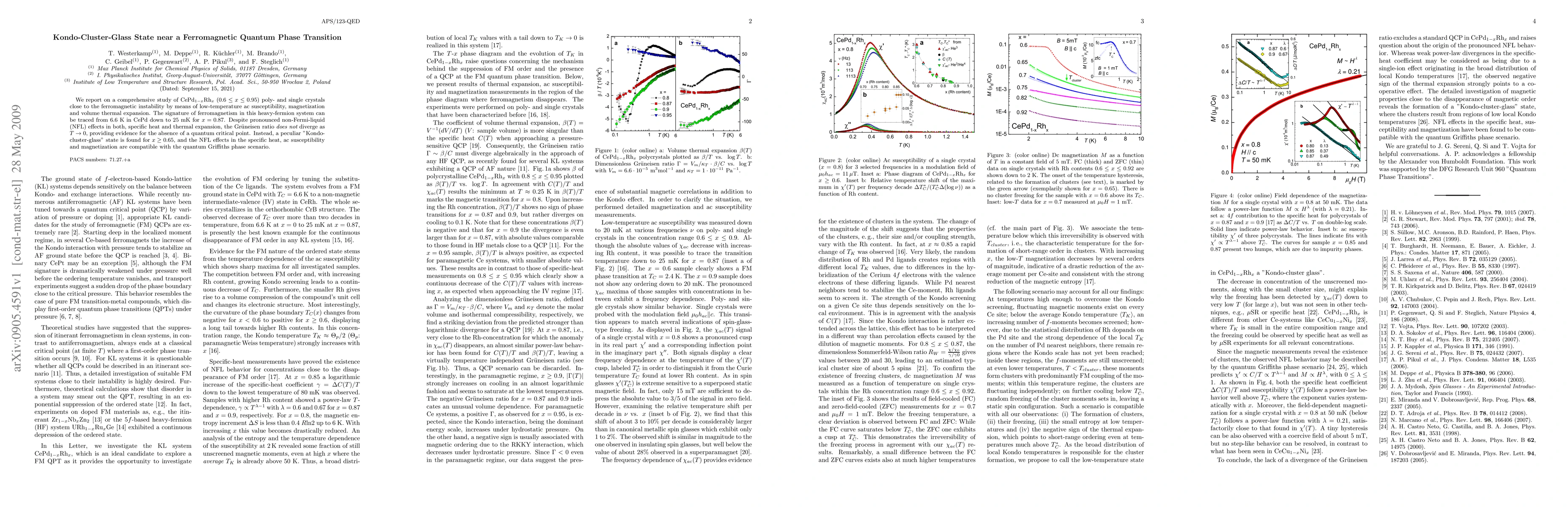 Researchers found a new state of matter in heavy-fermion systems near ferromagnetic phase transitions, characterized by unusual thermal expansion behavior, indicating no quantum critical point but instead a 'Kondo-cluster-glass' state.