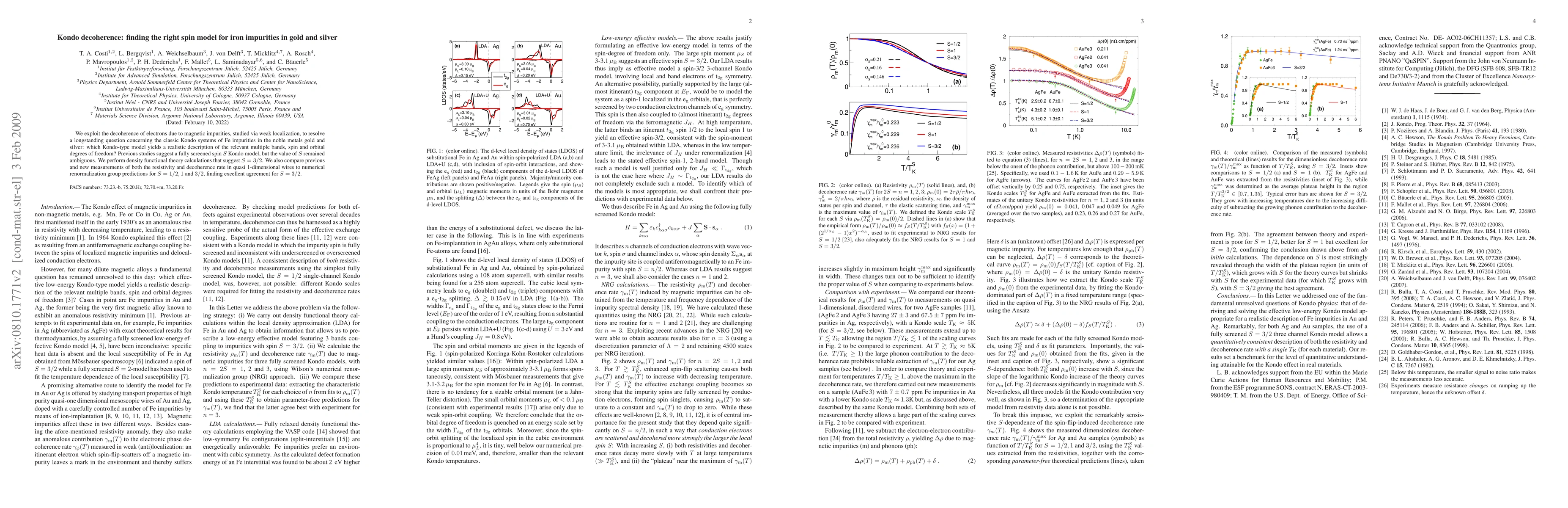 We exploit the decoherence of electrons due to magnetic impurities, studied via weak localization, to resolve a longstanding question concerning the classic Kondo systems of Fe impurities in the noble metals gold and silver: which Kondo-type model yields a realistic description of the relevant multiple bands, spin and orbital degrees of freedom? Previous studies suggest a fully screened spin $S$ Kondo model, but the value of $S$ remained ambiguous. We perform density functional theory calculations that suggest $S = 3/2$. We also compare previous and new measurements of both the resistivity and decoherence rate in quasi 1-dimensional wires to numerical renormalization group predictions for $S=1/2,1$ and 3/2, finding excellent agreement for $S=3/2$.