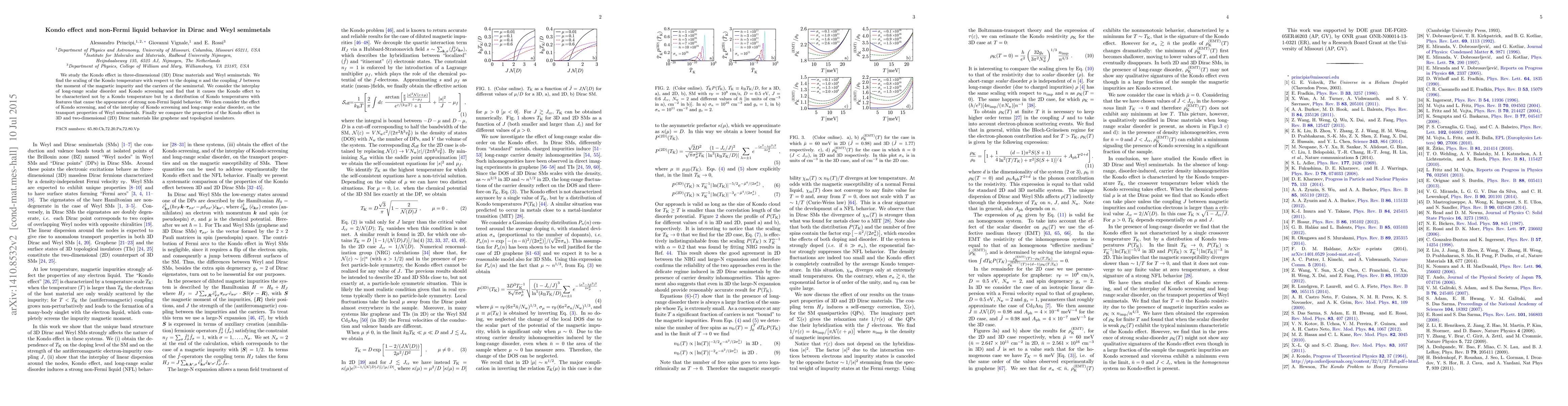 The paper presents a detailed analysis of the Kondo effect in Dirac and Weyl semimetals, including the impact of long-range scalar disorder, and derives expressions for the distribution of Kondo temperatures in the presence of disorder.