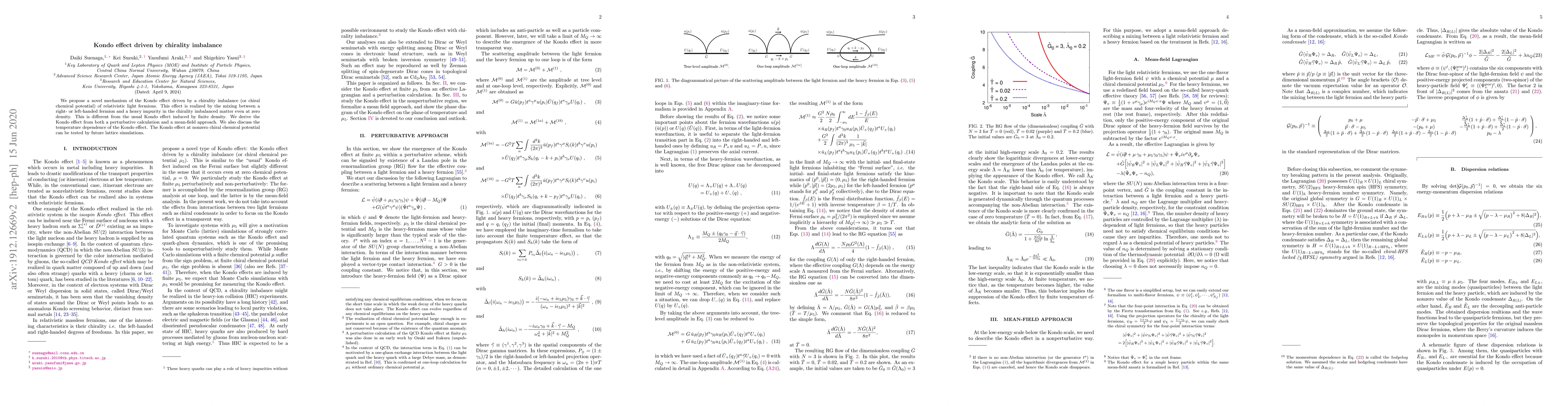 This paper proposes a novel Kondo effect mechanism driven by chirality imbalance in relativistic fermions, distinct from the conventional density-driven Kondo effect. The authors derive this effect through both perturbative and mean-field approaches and discuss its temperature dependence, suggesting future lattice simulations to test the phenomenon.