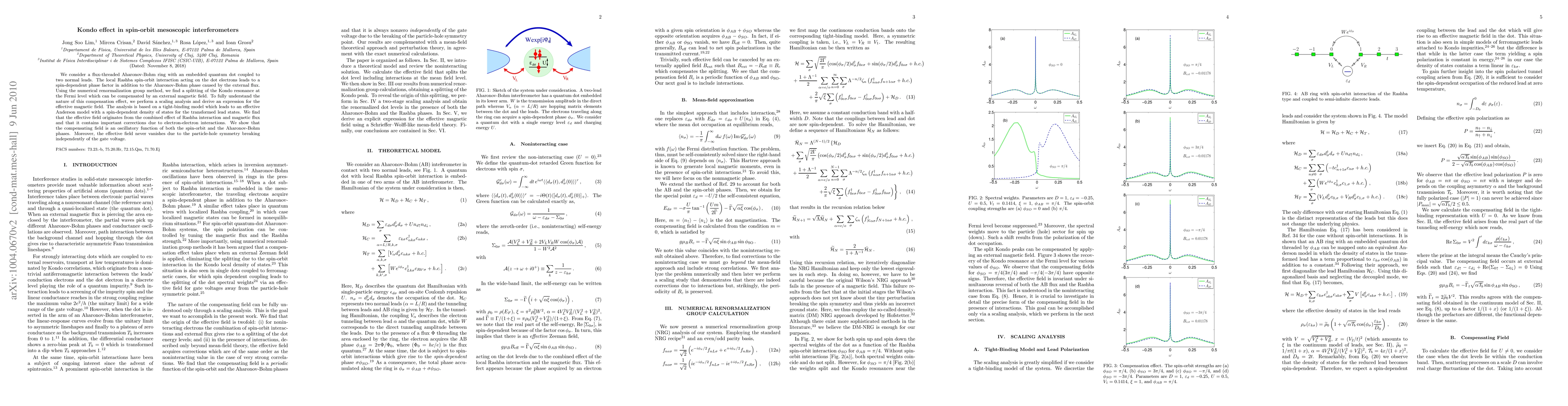 This paper investigates the Kondo effect in a spin-orbit mesoscopic interferometer, revealing a spin-dependent phase factor due to local Rashba interaction. The study finds that the Kondo resonance can be compensated by an external magnetic field, with the effective magnetic field originating from the interplay of the Rashba interaction and magnetic flux, showing oscillatory behavior.