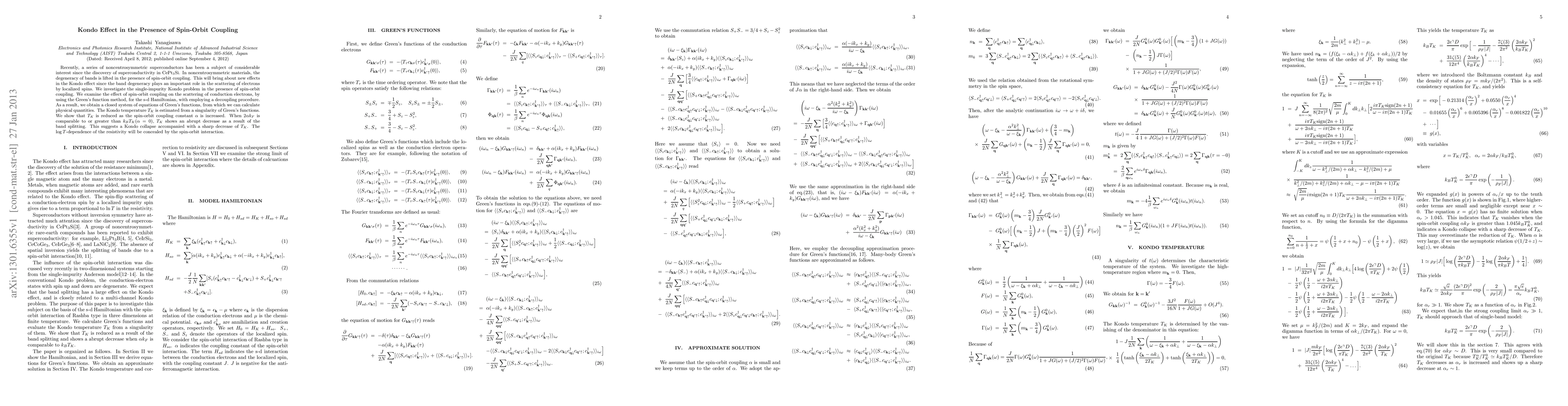 Recently, a series of noncentrosymmetric superconductors has been a subject of considerable interest since the discovery of superconductivity in CePt_3Si. In noncentrosymmetric materials, the degeneracy of bands is lifted in the presence of spin-orbit coupling. This will bring about new effects in the Kondo effect since the band degeneracy plays an important role in the scattering of electrons by localized spins. We investigate the single-impurity Kondo problem in the presence of spin-orbit coupling. We examine the effect of spin-orbit coupling on the scattering of conduction electrons, by using the Green's function method, for the s-d Hamiltonian, with employing a decoupling procedure. As a result, we obtain a closed system of equations of Green's functions, from which we can calculate physical quantities. The Kondo temperature T_K is estimated from a singularity of Green's functions. We show that T_K is reduced as the spin-orbit coupling constant \alpha is increased. When 2\alpha k_F is comparable to or greater than k_BT_K(\alpha=0), T_K shows an abrupt decrease as a result of the band splitting. This suggests a Kondo collapse accompanied with a sharp decrease of T_K. The log T-dependence of the resistivity will be concealed by the spin-orbit interaction.
