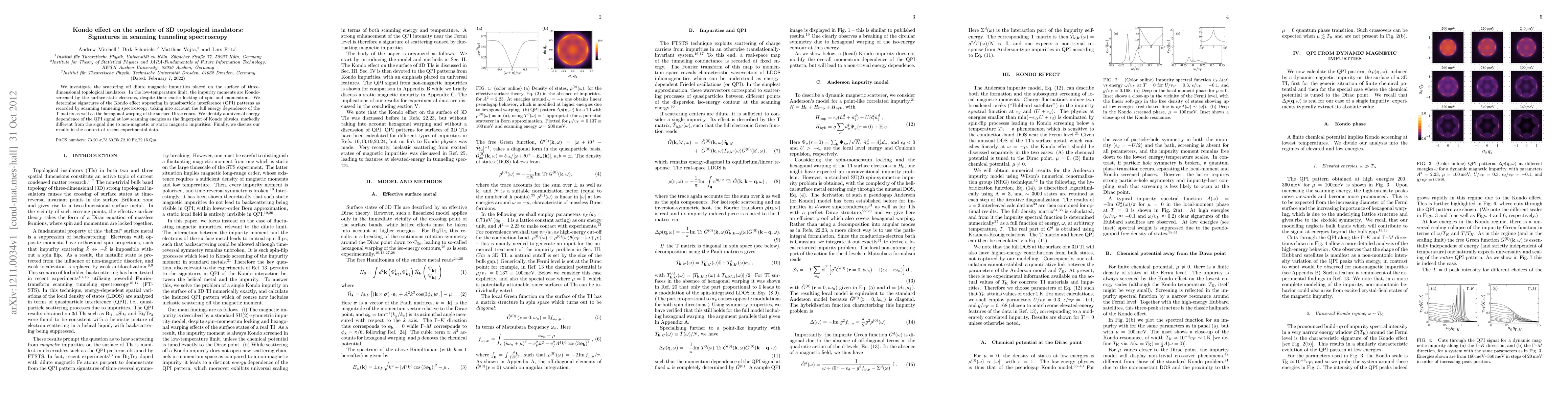 This paper investigates the Kondo effect on the surface of 3D topological insulators, revealing its signatures through scanning tunneling spectroscopy. It identifies a unique energy dependence in quasiparticle interference patterns as a fingerprint of Kondo physics, distinct from non-magnetic or static magnetic impurities.