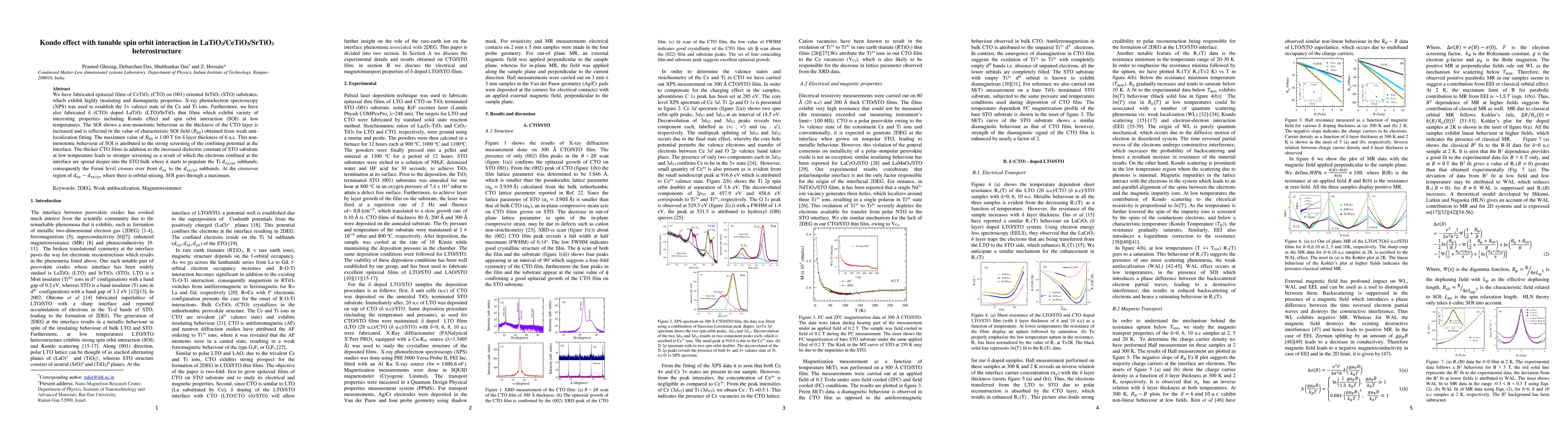 This study fabricates LaTiO3/CeTiO3/SrTiO3 heterostructures showing Kondo effect and tunable spin orbit interaction. The spin orbit interaction exhibits non-monotonic behavior with CTO layer thickness, reaching a maximum at 6 unit cells due to strong screening and orbital mixing at the interface.