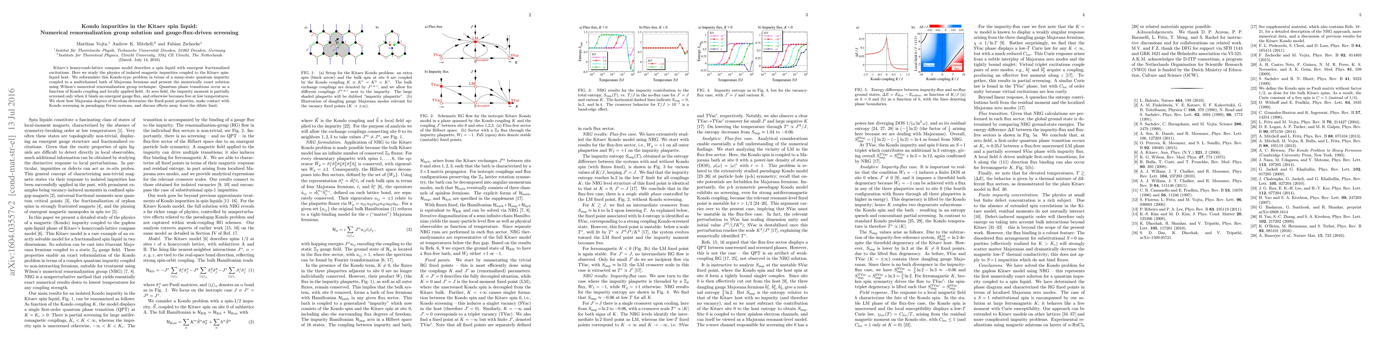 Kitaev's honeycomb-lattice compass model describes a spin liquid with emergent fractionalized excitations. Here we study the physics of isolated magnetic impurities coupled to the Kitaev spin-liquid host. We reformulate this Kondo-type problem in terms of a many-state quantum impurity coupled to a multichannel bath of Majorana fermions and present the numerically exact solution using Wilson's numerical renormalization group technique. Quantum phase transitions occur as a function of Kondo coupling and locally applied field. At zero field, the impurity moment is partially screened only when it binds an emergent gauge flux, and otherwise becomes free at low temperatures. We show how Majorana degrees of freedom determine the fixed-point properties, make contact with Kondo screening in pseudogap Fermi systems, and discuss effects away from the dilute limit.