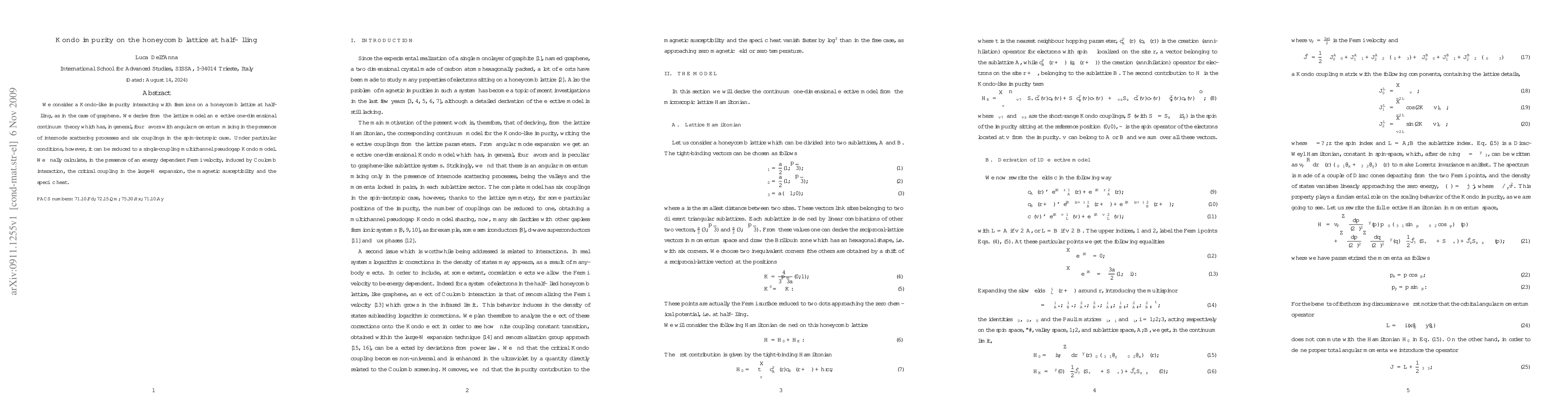 This paper explores a Kondo impurity on a honeycomb lattice, analogous to graphene, deriving an effective one-dimensional theory with angular momentum mixing. It reduces to a single-coupling multichannel pseudogap Kondo model under certain conditions and calculates critical coupling, magnetic susceptibility, and specific heat in the large-N expansion.
