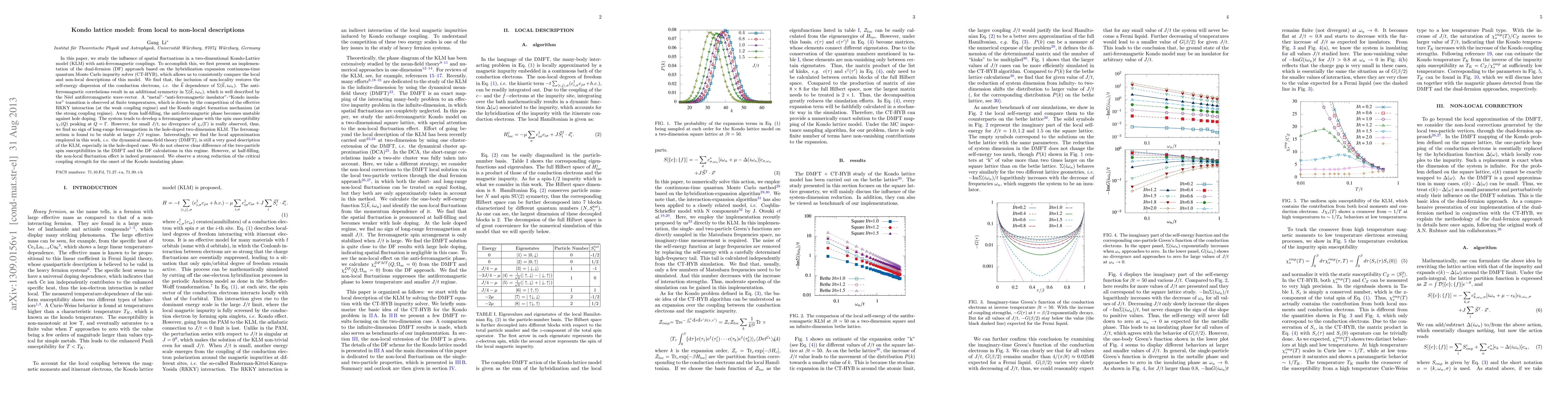 In this paper, we study the influence of spatial fluctuations in a two-dimentional Kondo-Lattice model (KLM) with anti-ferromagnetic couplings. To accomplish this, we first present an implementation of the dual-fermion (DF) approach based on the hybridization expansion continuous-time quantum Monte Carlo impurity solver (CT-HYB), which allows us to consistently compare the local and non-local descriptions of this model. We find that, the inclusion of non-locality restores the self-energy dispersion of the conduction electrons, {\it i.e.} the $\vec{k}$ dependence of $\Sigma(\vec{k}, i\omega_{n})$. The anti-ferromagnetic correlations result in an additional symmetry in $\Sigma(\vec{k}, i\omega_{n})$, which is well described by the N\'eel antiferromagnetic wave-vector. A "metal"-"anti-ferromagnetic insulator"-"Kondo insulator" transition is observed at finite temperatures, which is driven by the competition of the effective RKKY interaction (at the weak coupling regime) and the Kondo singlet formation mechanism (at the strong coupling regime). Away from half-filling, the anti-ferromagnetic phase becomes unstable against hole doping. The system tends to develop a ferromagnetic phase with the spin susceptibility $\chi_{s}(Q)$ peaking at $Q=\Gamma$. However, for small $J/t$, no divergence of $\chi_{s}(\Gamma)$ is really observed, thus, we find no sign of long-range ferromagnetism in the hole-doped two-dimension KLM. The ferromagnetism is found to be stable at larger $J/t$ regime. Interestingly, we find the local approximation employed in this work, {\it i.e.} the dynamical mean-field theory (DMFT), is still a very good description of the KLM, especially in the hole-doped case. However, at half-filling, the non-local fluctuation effect is indeed pronounced. We observe a strong reduction of the critical coupling strength for the onset of the Kondo insulating phase.